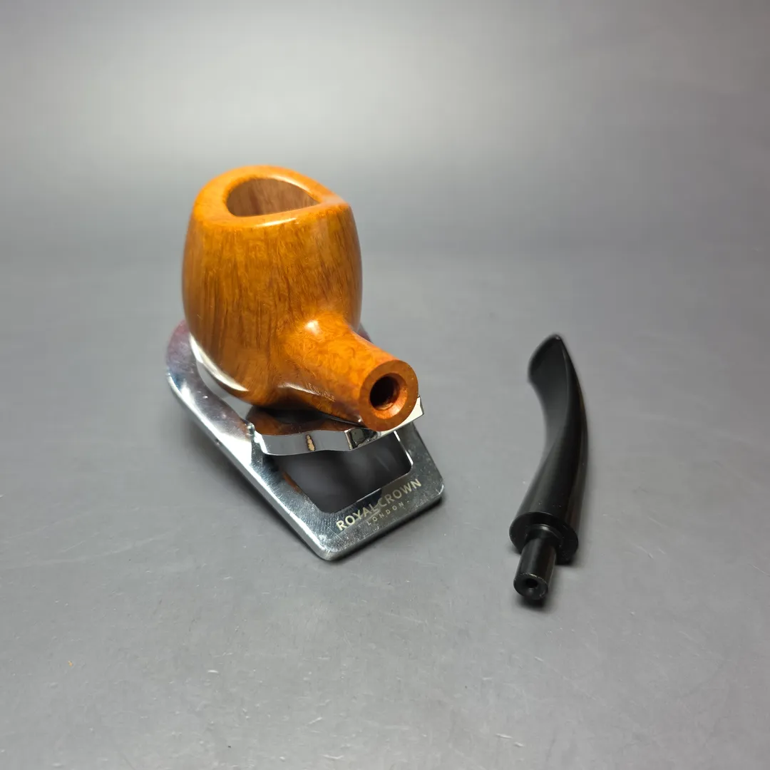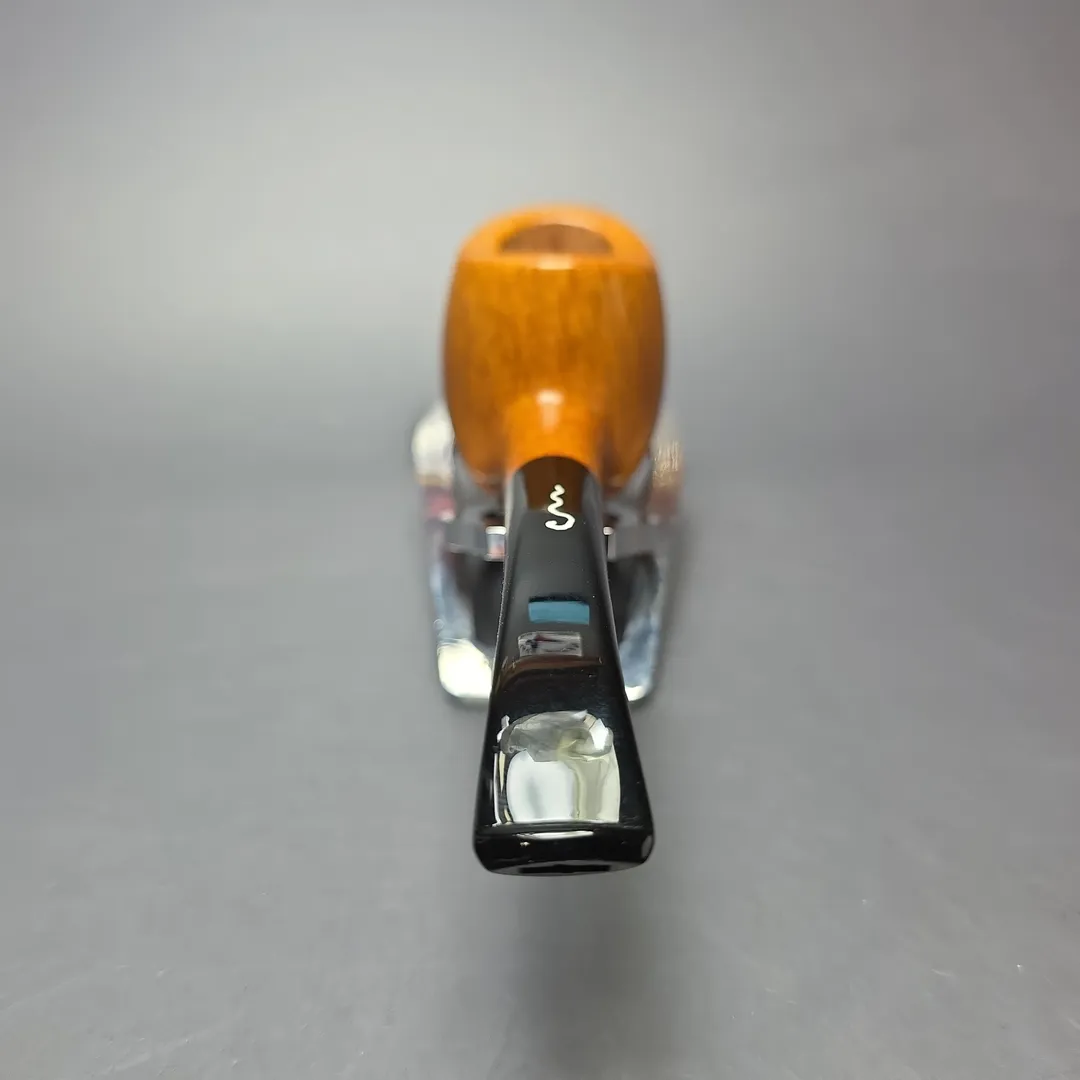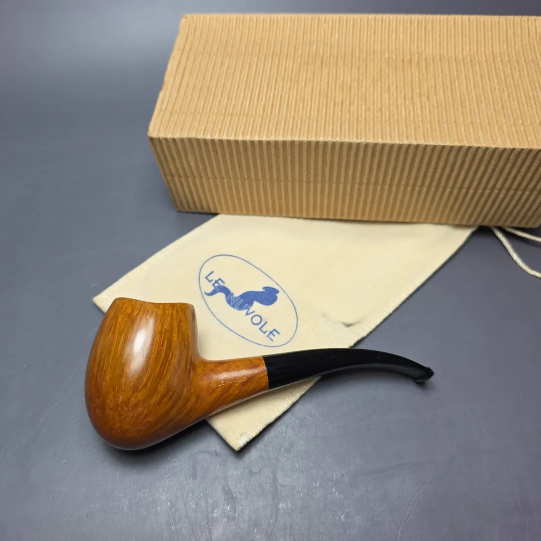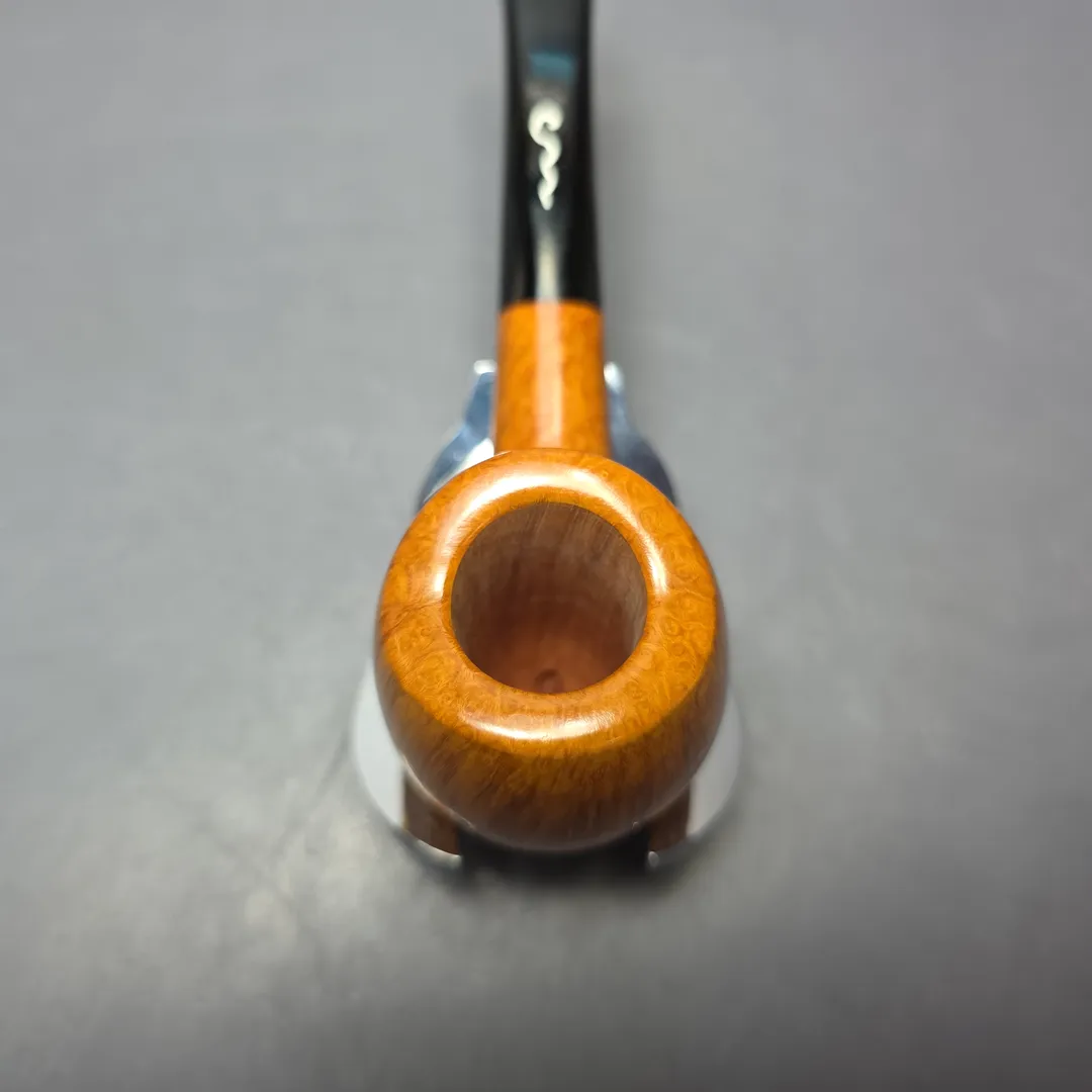 The hawkbill is a staple of Italian pipe making, with just about every major workshop, from Castello to Ser Jacopo, having its own take on that most unusual of shapes. Maurizio and Stefania Tombari also have their own, unique approaches to the shape, though Le Nuvole hawkbills stand out even in a veritable field of distinctive and distinctly high-grade renditions. Blending the conventional hawkbill with briar and meerschaum shapes of days gone by, such as the Lyon, this one is decidedly plump and organic, especially when factoring in its almost orific, concave rim, while simultaneously conjuring the signature lightness of Le Nuvole pipes. As far as grading goes, this one is a “6 Cloud,” the third highest attainable for Le Nuvole pipes. Worth noting is that the Tombaris are extremely exacting when it comes to grading, which is done according to the consistency of the straight grain exhibited by Le Nuvole pipes, and as such very few of these pipes have ever been awarded grades from the higher-end of the Tombaris’ system (during the entirety of the 2010s, for example, only 2 Le Nuvole pipes received an “8 Cloud” grade, and only 7 received a “7 Cloud” grade).