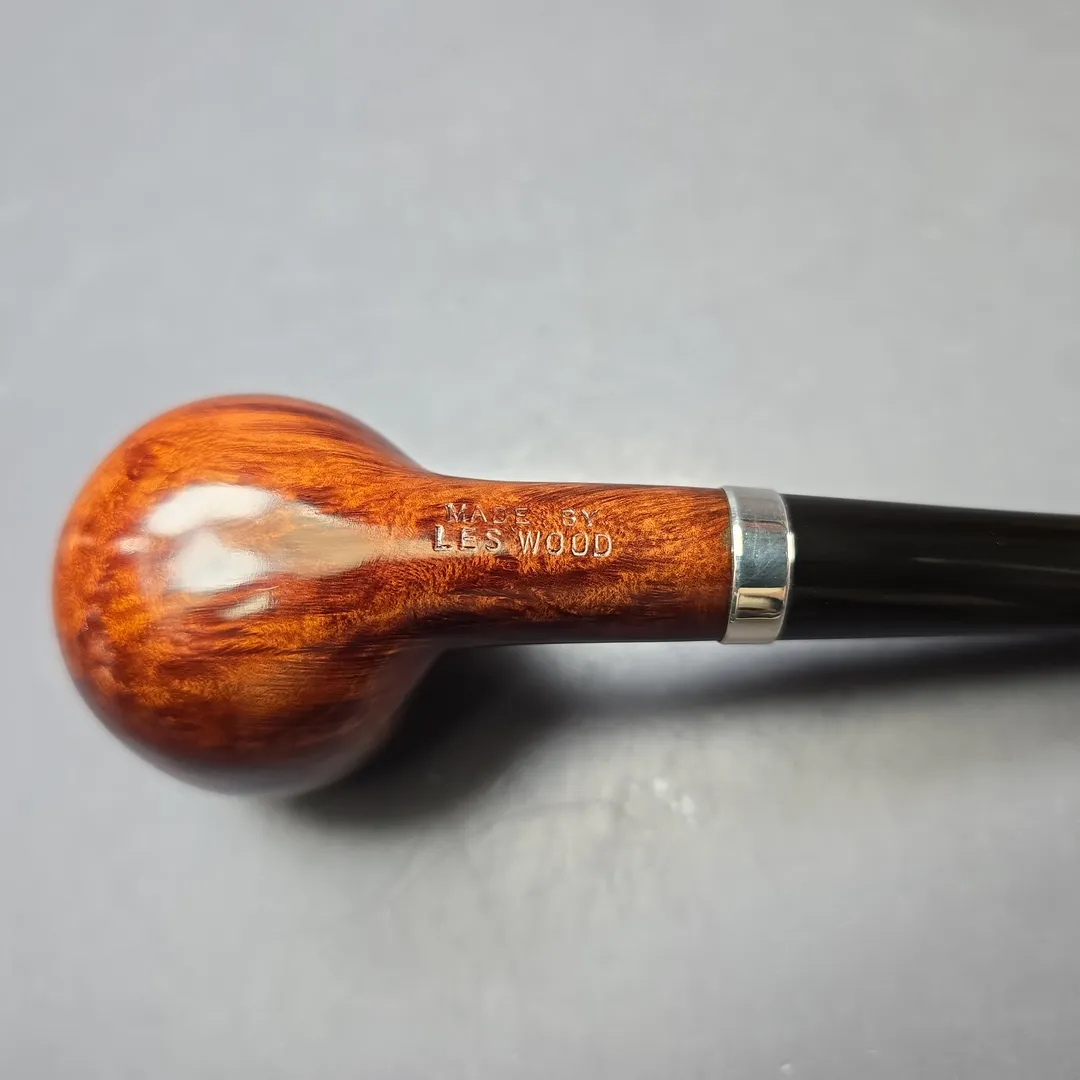 This particular pipe is a very early, and very uncommon, example of another name Leslie and Dolly used for their pipes, though one that is far easier to identify than, say, a Jacobean: Les Wood. Ferndown collectors will already know that most of those pipes were stamped with a short script indicating the pipe as having been “made by Les Wood,” though it seems that this practice originated with pipes that predated Ferndown by a long time—back when it referred not only to the man behind the brand, but to the brand itself.