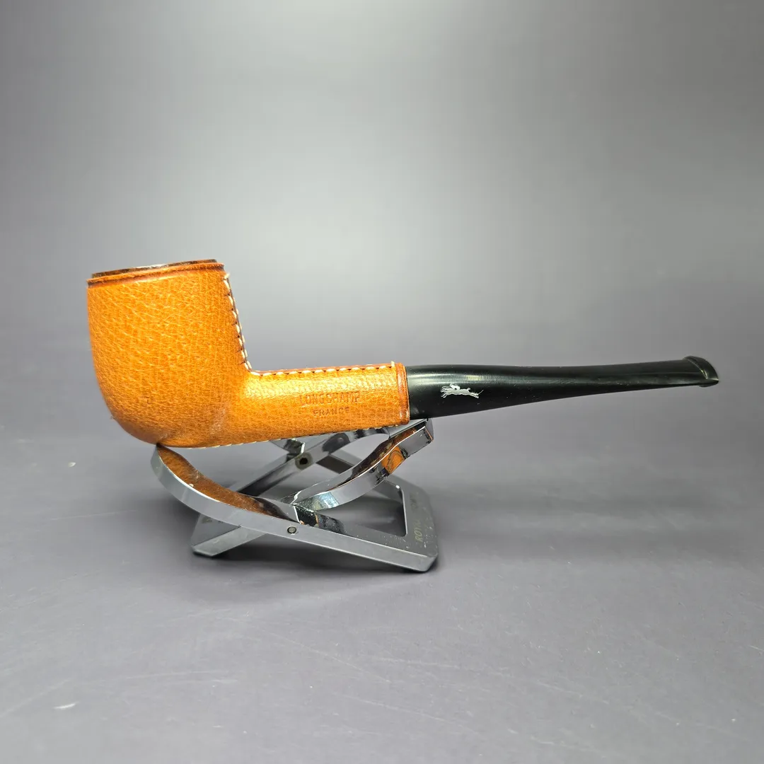 The Longchamp brand was created by Jean Cassegrain, a Parisian who inherited his family’s tobacconist shop in the early post-war years. At that time, good briar was scarce, meaning the pipes Cassegrain was able to procure for his shop were seconds-quality at best. While pipe makers elsewhere overcame this issue by significantly slimming down their designs, or utilizing shank extensions cut from bamboo, Bakelite, and other materials, Cassegrain’s solution was to team up with local leatherworkers, cladding his pipes in a far more aesthetically pleasing garb. Yet, just as with the Danish and English innovations, Cassegrain’s leather-clad pipes remained popular even once good briar began making its way back to European pipe makers. The only problem left for Cassegrain: his name. It was already taken by another Cassegrain for their own venture. Thus, Longchamp was born.