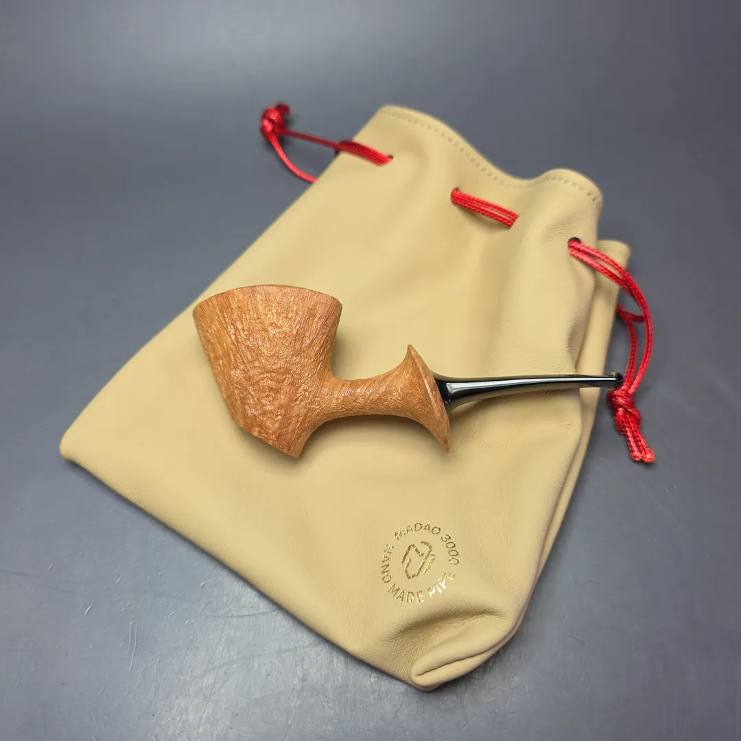 Madao 3000 Natural Sandblasted Asymmetric Cherrywood Sitter Handmade Briar Pipe, New