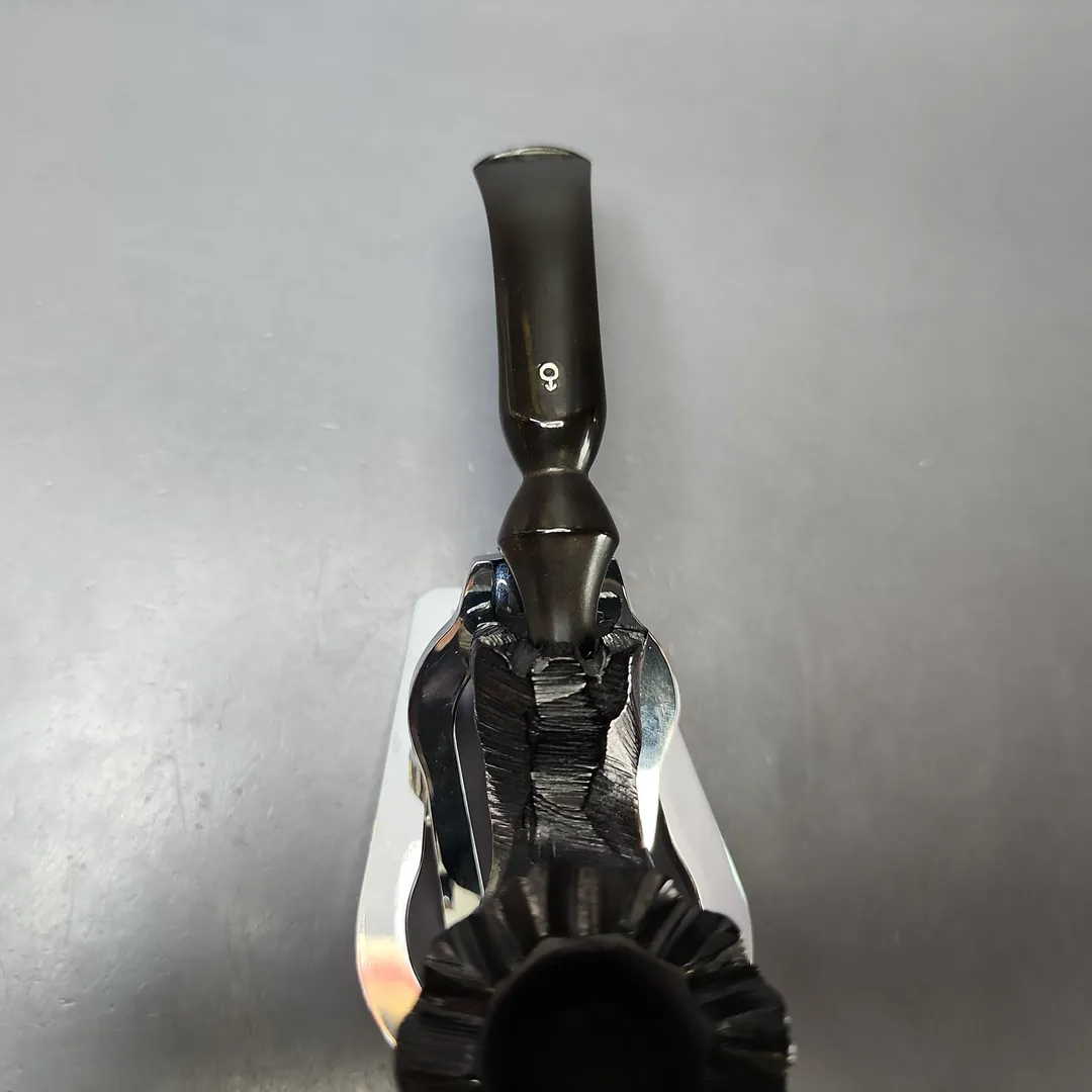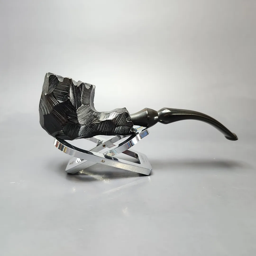 The Man brand (and logo) was something of a play on words, being a make produced and sold by Laxey Pipes on the British Isle of Man. Laxey predominantly made meerschaum pipes, using African block meerschaum until near the end of the 20th century, when meerschaum mining operations in Africa ceased (by which point the Turkish export of raw block meerschaum had also been prohibited, all but sealing the fate of non-Turkish meerschaum pipes). Laxey was especially good at what they did, which is partly why so many briar pipe companies enlisted them to make African meerschaums to be sold under their own name, including Peterson, Barling, and Nording. This one is a very rustic, freehand style African meer, with more than a little reminiscence of certain contemporaneous Danish briars.