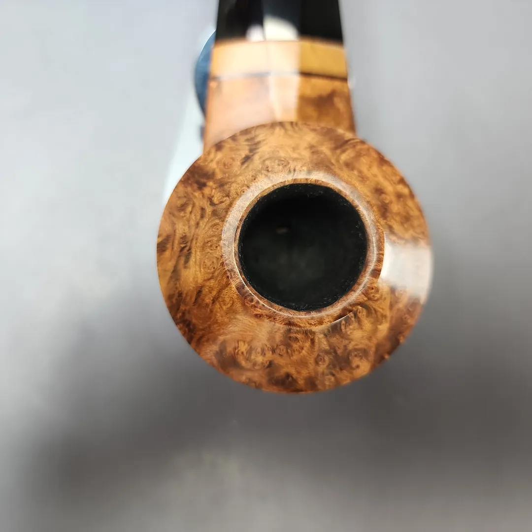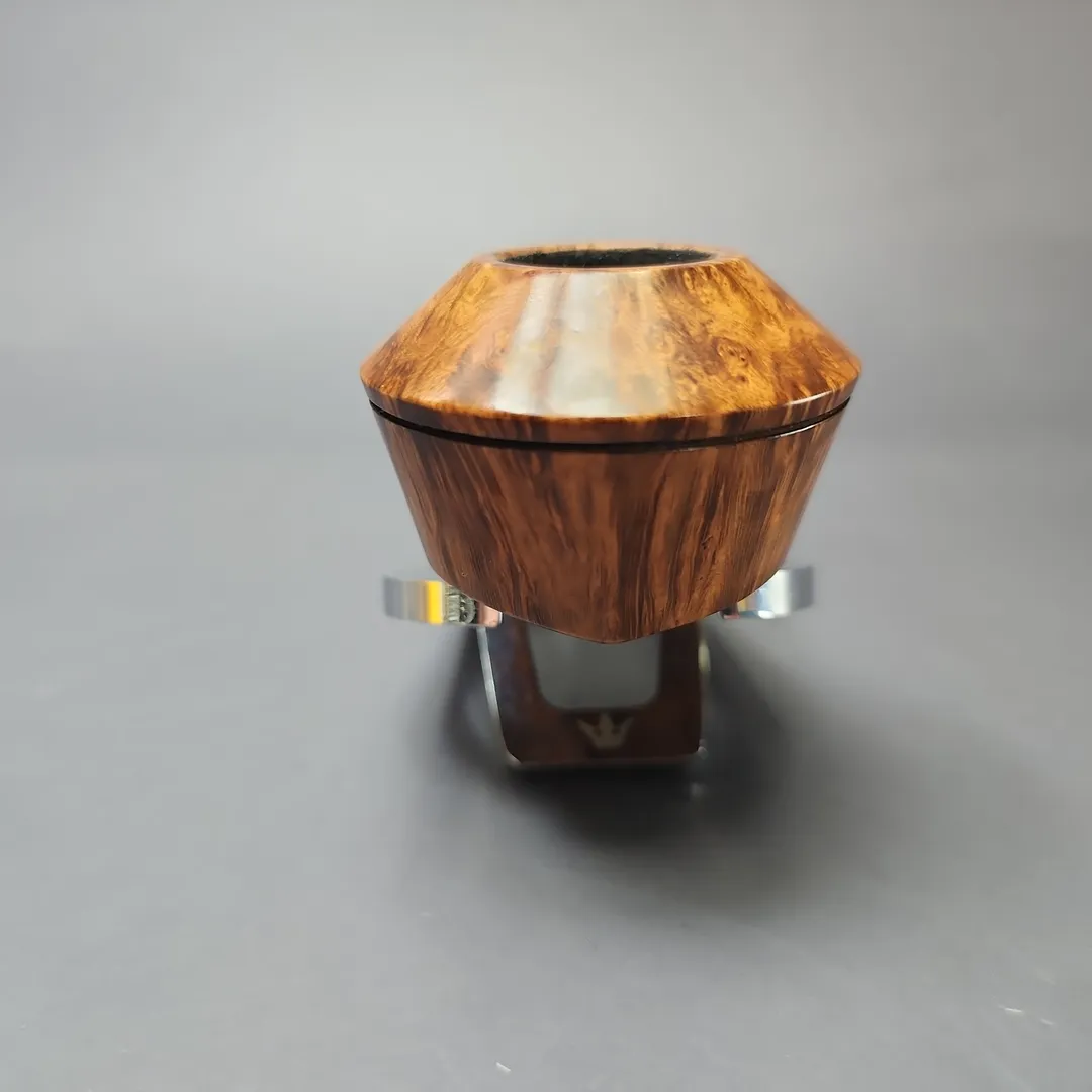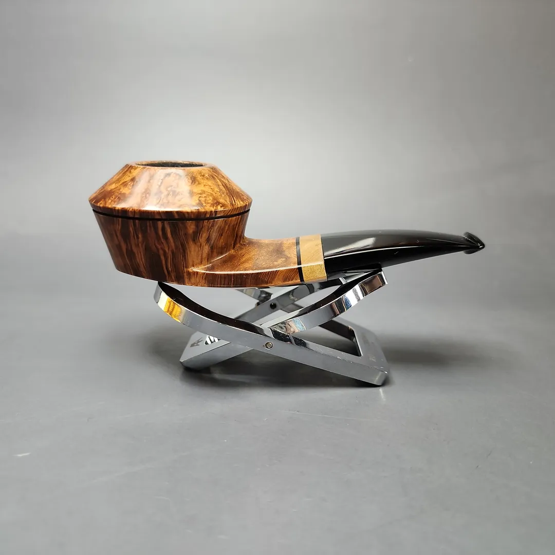 So called “wide shank bulldog,” or “surfing bulldog” shapes have become a staple among artisan pipe makers, especially in Europe’s central and eastern regions. Slovakia’s Marek Kando is one artisan whose portfolio is filled with variations on such a theme. Unlike his Czech counterparts however, such as Biftek, Cermak, or Eclesias, his renditions are not as indebted to the Ukulele designs of Sixten Ivarsson, or the Eskimo (or Inuit) designs of Ed Burak and Tom Eltang. Instead, Kando’s use of facets has his pipes far more akin to those of Poul Ilsted, along with Manduela and others in the “Svendborg school.” This one, for example, is what one might end up with if asked to produce a nosewarmer-length rendition of one of Ilsted’s famous bulldog designs, and not without their strikingly excellent grain, either.