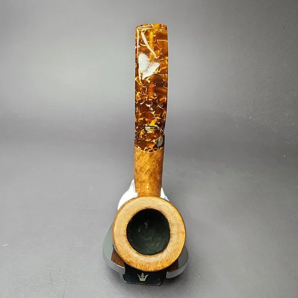 From the looks of it, this particular Mastro de Paja belongs t to a kind of “transitional period” within the workshop’s history. It’ll either be from the later Spadoni years, or perhaps the early Montini years, as it retain’s the workshop’s historic commitments to simpler, handmade pipes and excellent grain, while having a slightly more ornate stem—while overall not being nearly as ornate as contemporary models. Being a 3B grade, it has excellent grain patterns, taking the form of a mix of straight grain and birds’-eye. I’m reminded a little of GBD and their Bronze Velvet line, though in this instance it would have to be a handmade, such as if Horry Jamieson was to make a Bronze Velvet Unique.
