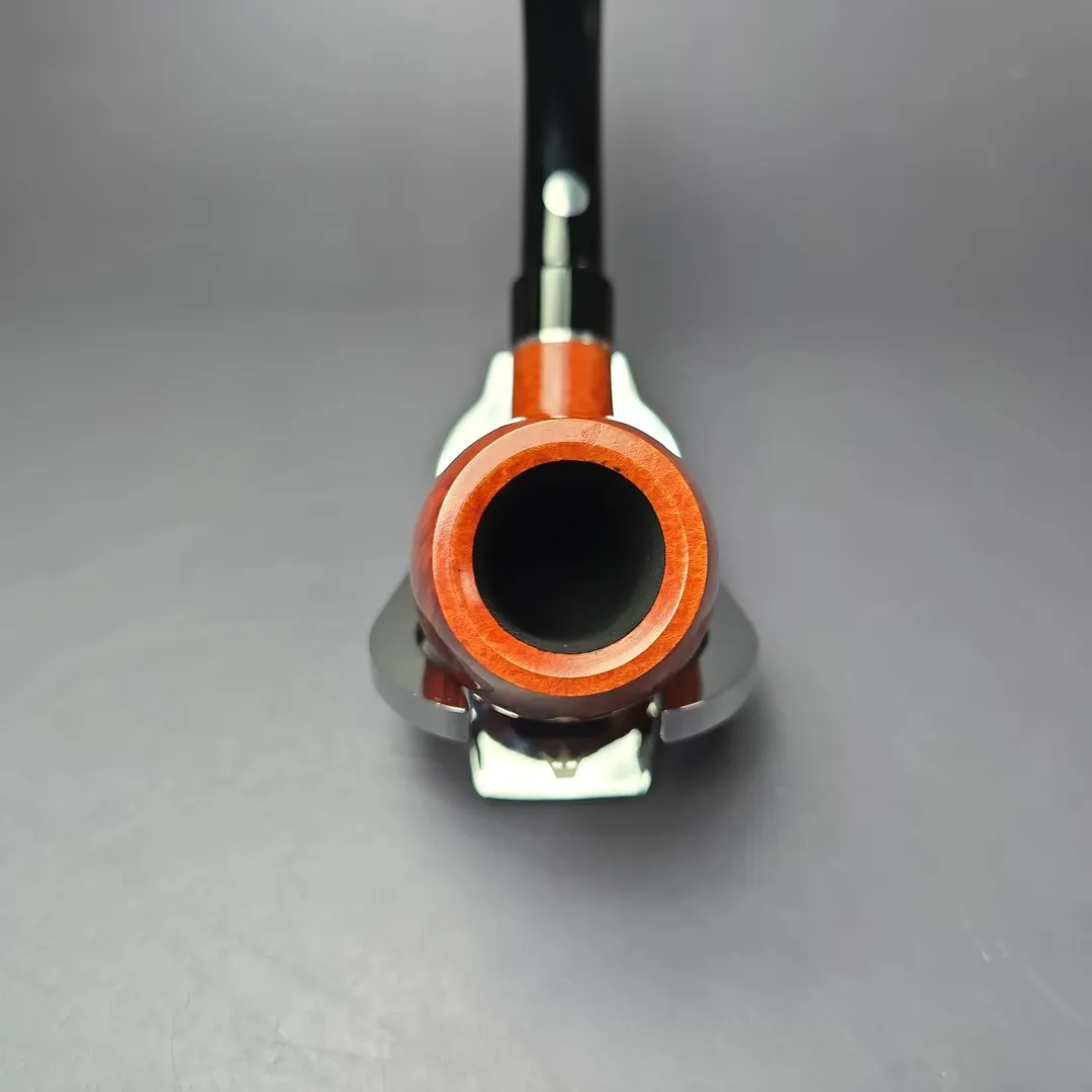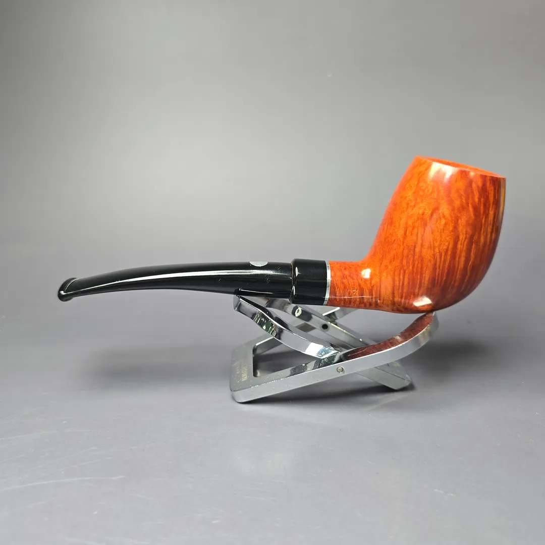 This pipe is completely unsmoked, with an original bowl coating. Having come to us via a large new old stock collection from a shop closure in Europe, it also comes with its original box and sleeve. The pipe is chambered to allow for the use of 9mm filters if desired.