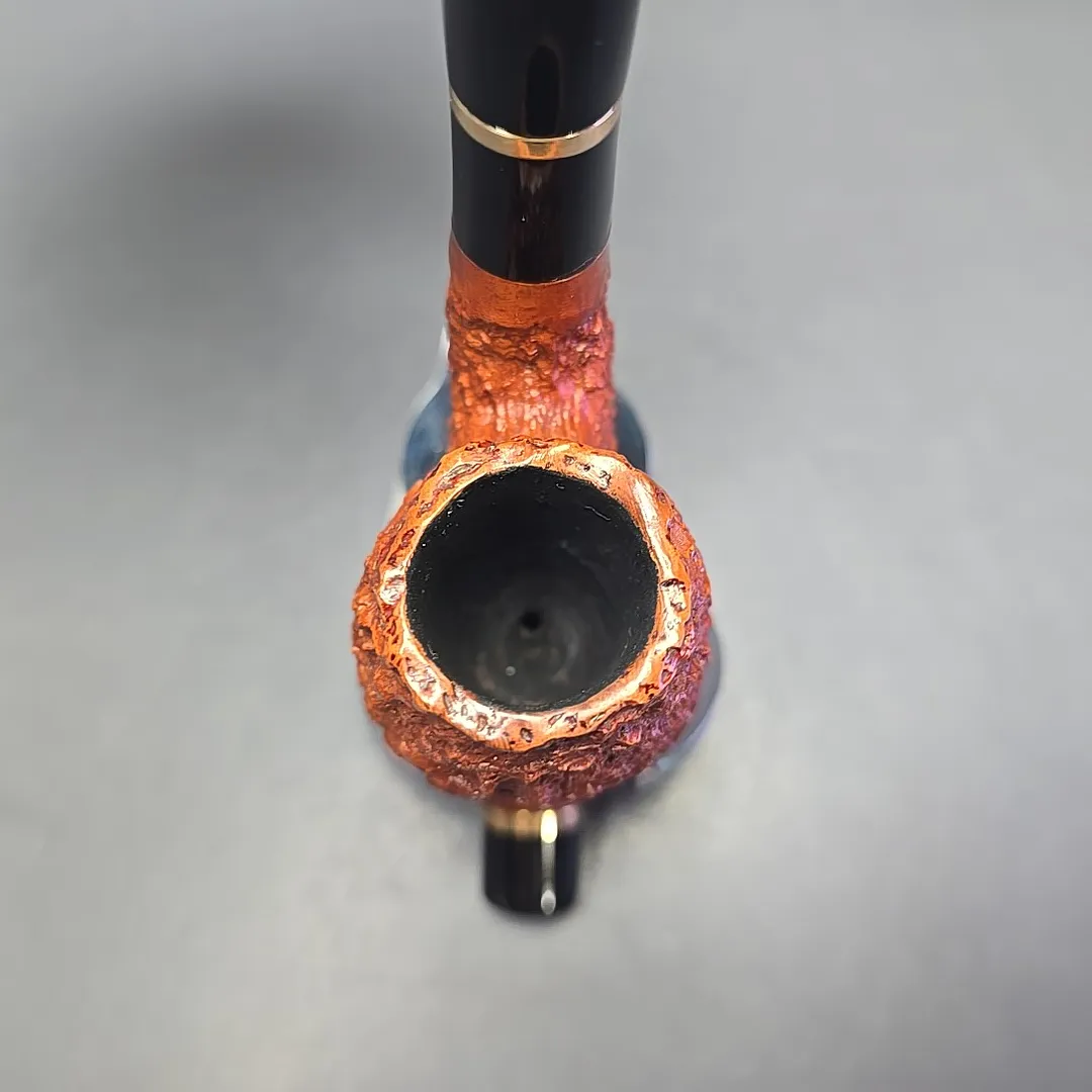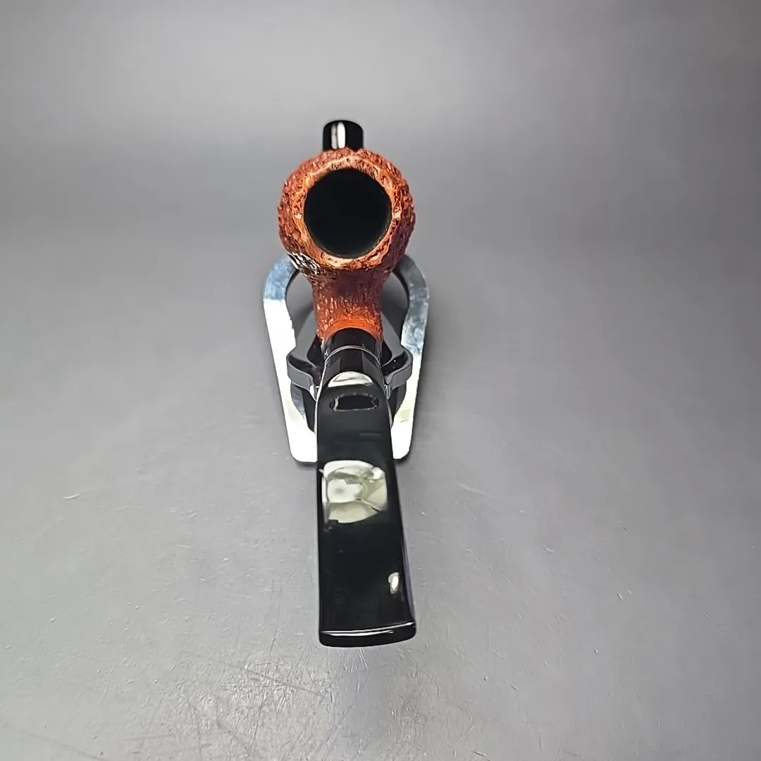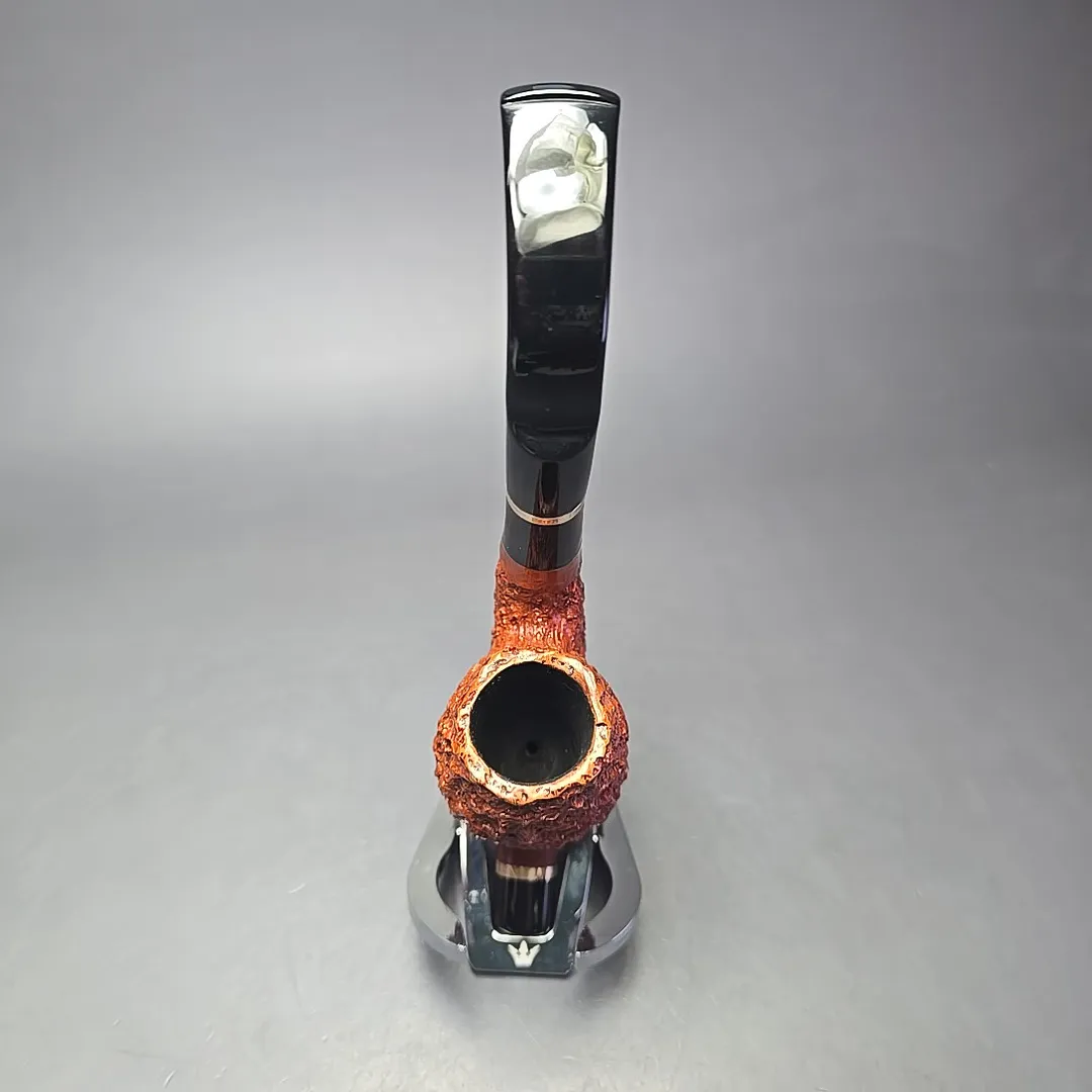 Cavalier shapes feature prominently in Mauro Armellini’s portfolio, though, being a highly experienced, Italian pipe maker, his renditions tended to have plenty of distinctly Italian character. This one is a true cavalier, and its shaping quite faithfully recalls the hunter’s pipes from which the briar cavalier first descended. The finishing, however, makes it far more unique, with the bowl having been dressed in exactly the kind of pebble-dash rustication Italian pipes are known for—in part because Mauro Armellini himself helped design and pioneer them.