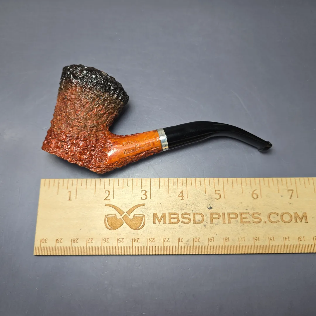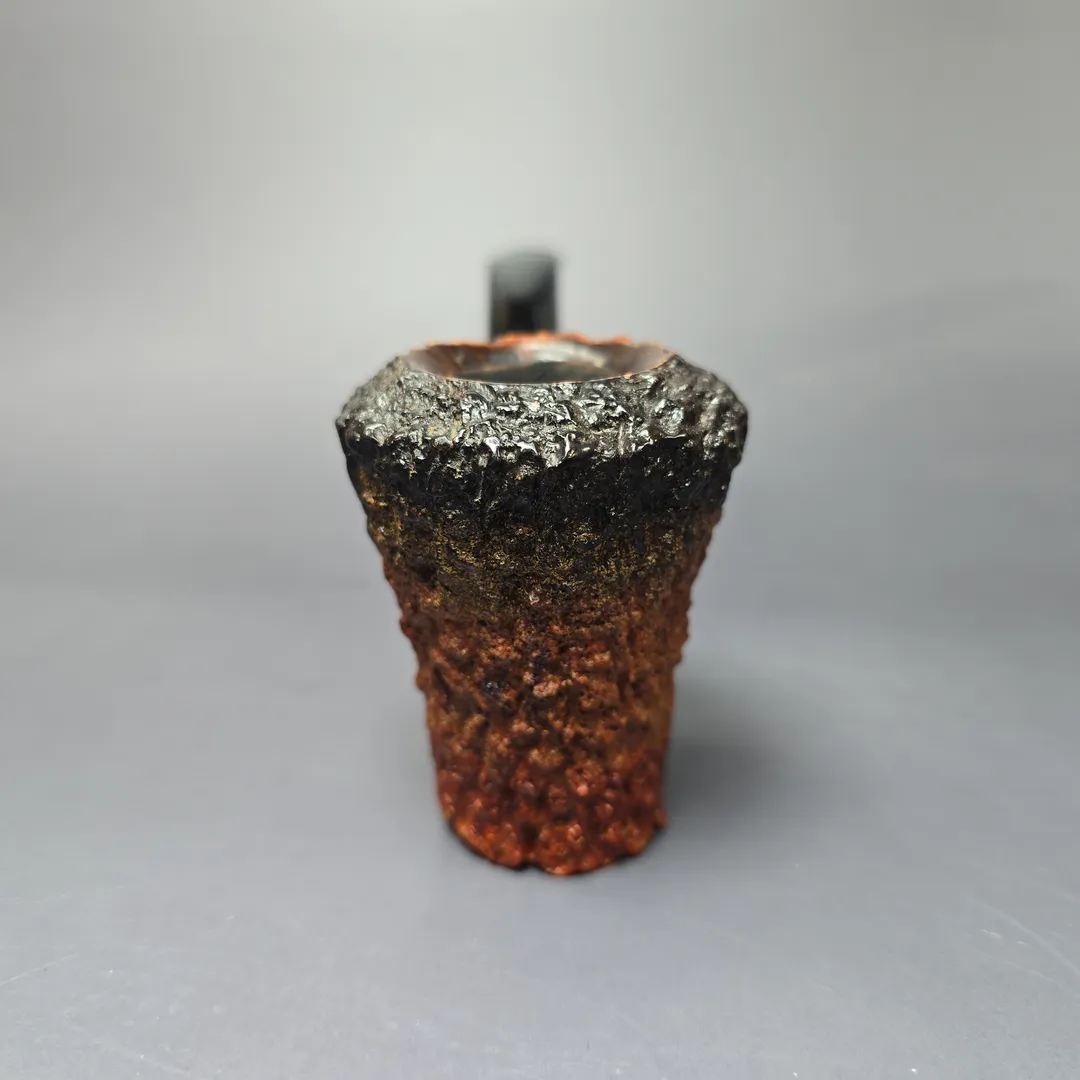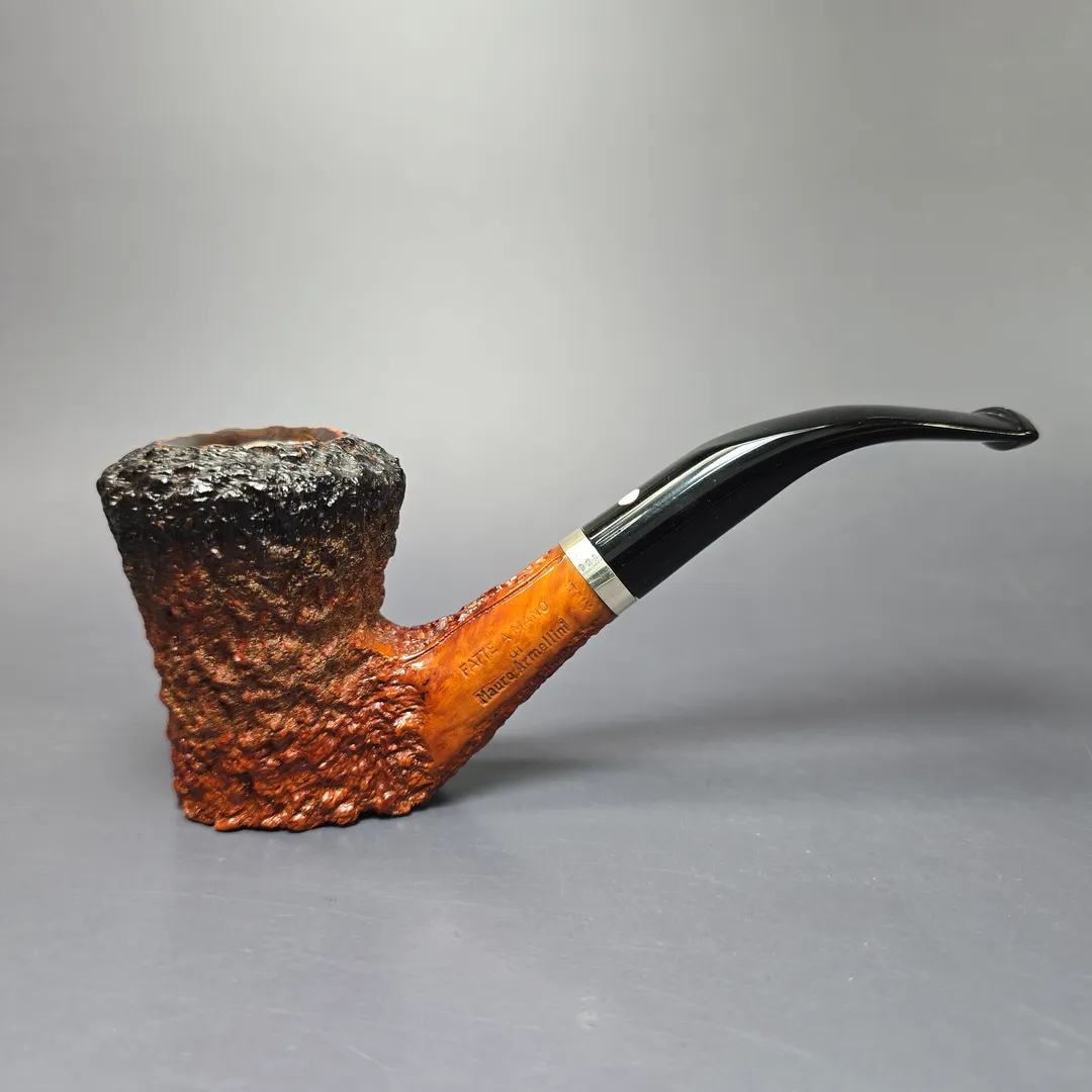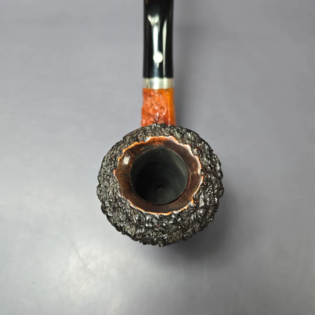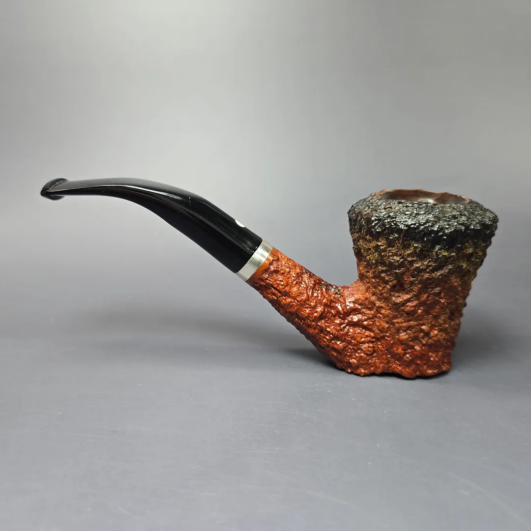 While rusticated finishes are a veritable Italian institution, Mauro Armellini deserves a little more credit than most, given that he was instrumental in developing and popularizing such finishes during his time at the nation’s historic pipe companies. This one comes from his time as a solo artisan, taking the form of a a wonderfully craggy bent Dublin sitter. In this instance, the rustication applied has been paired with a fumed top-coat, which together make for a great juxtaposition with the sterling silver collar it wears, along with its more reserved, black Lucite stem.
