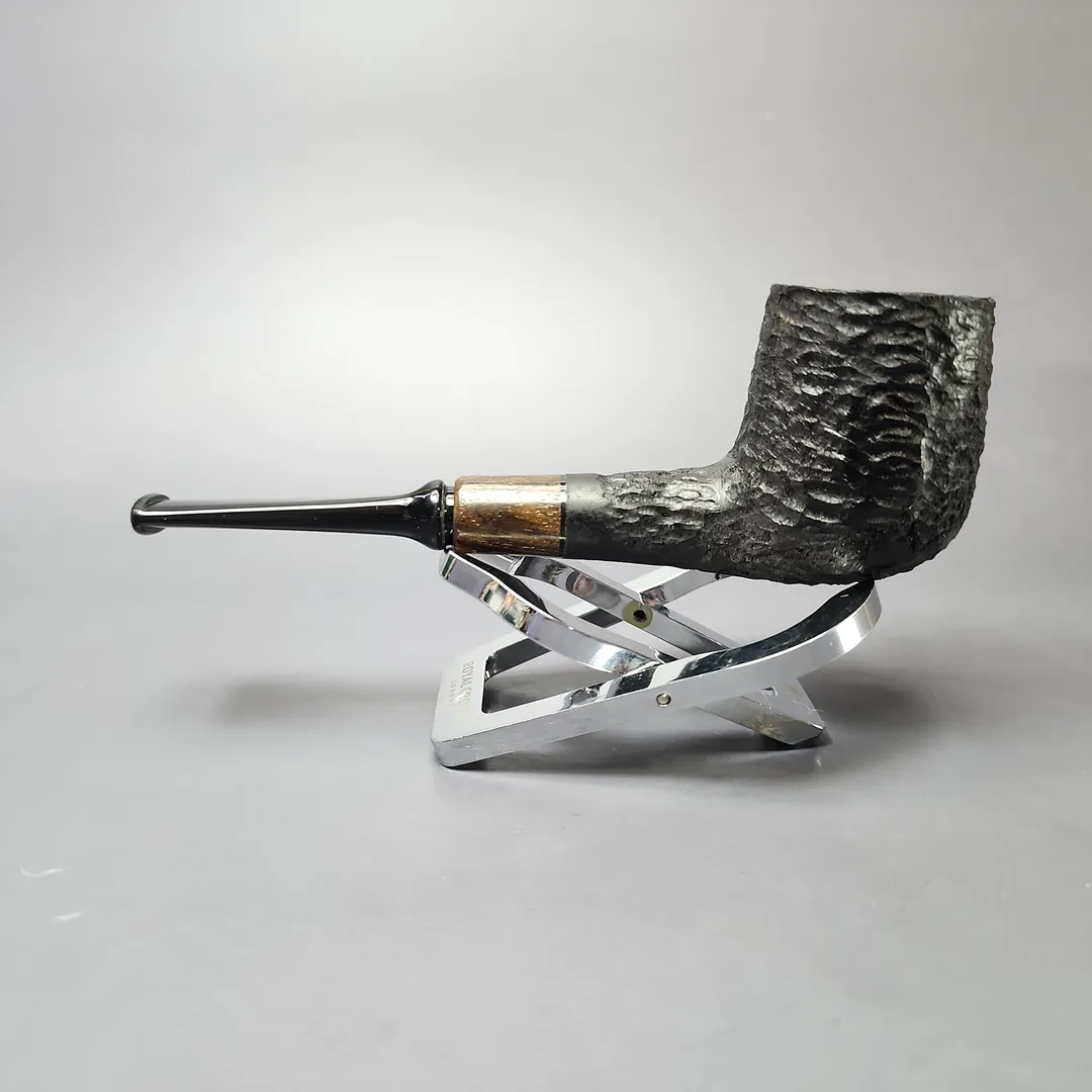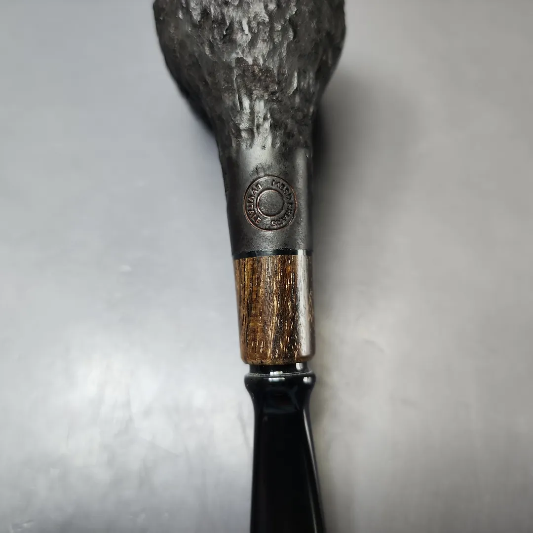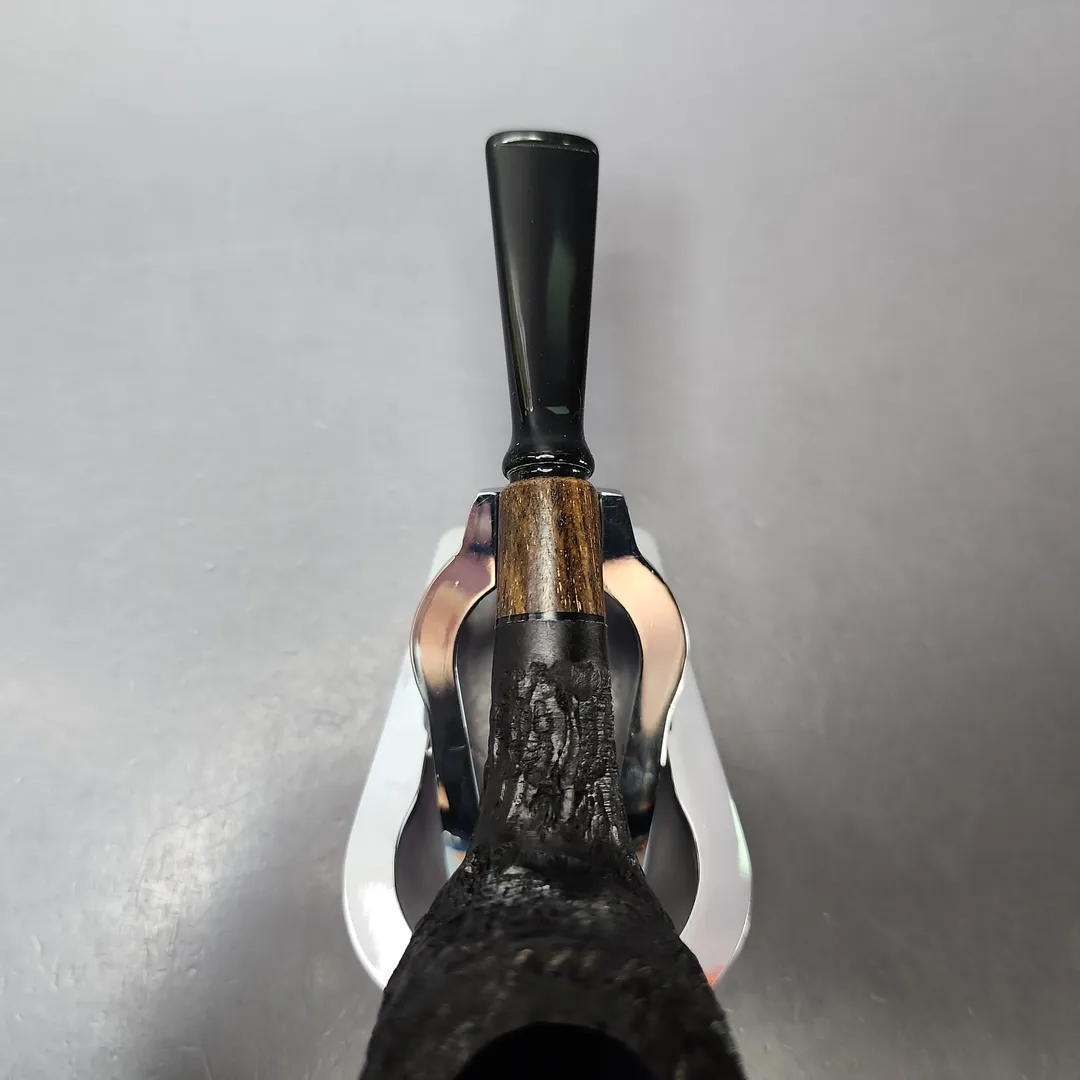 MBSD Briars by Piero Vitale Black Rusticated Billiard w/ Zebrawood Briar Pipe, New