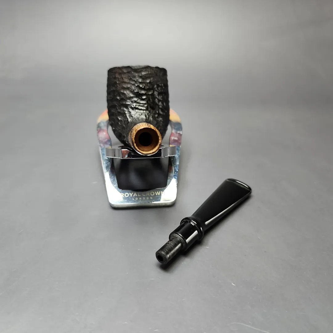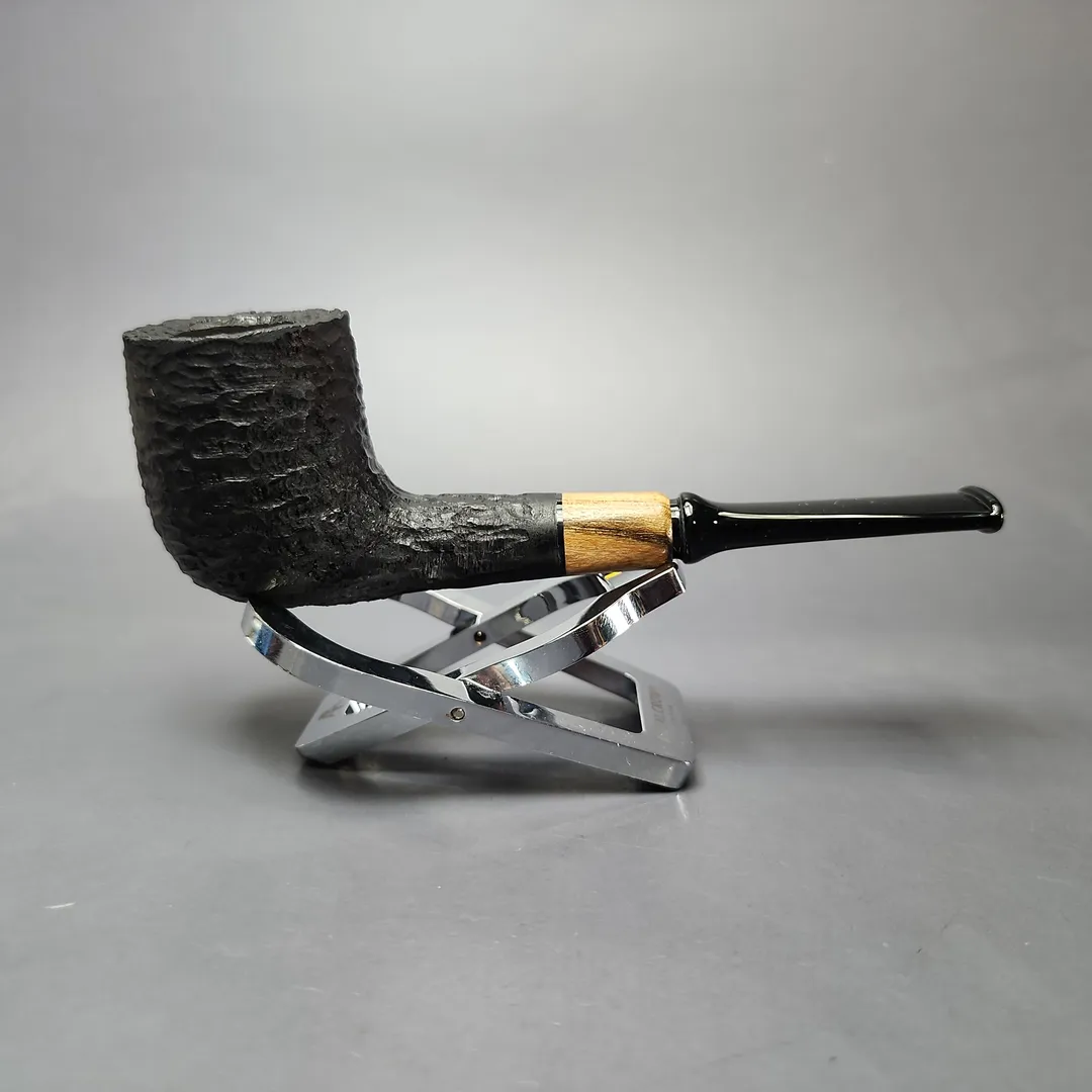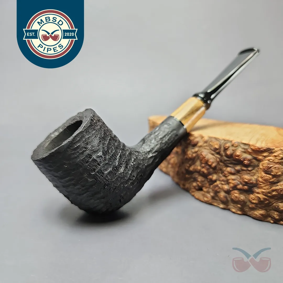 MBSD Briars by Piero Vitale Black Rusticated Billiard w/ Zebrawood Briar Pipe, New