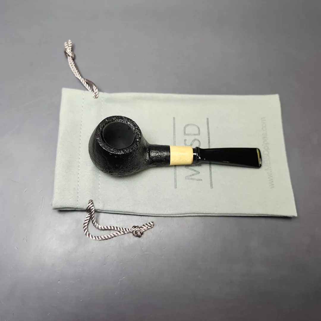 MBSD Briars by Piero Vitale Black Sandblasted Author w/ Boxwood Briar Pipe, New