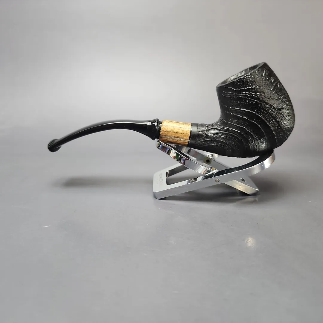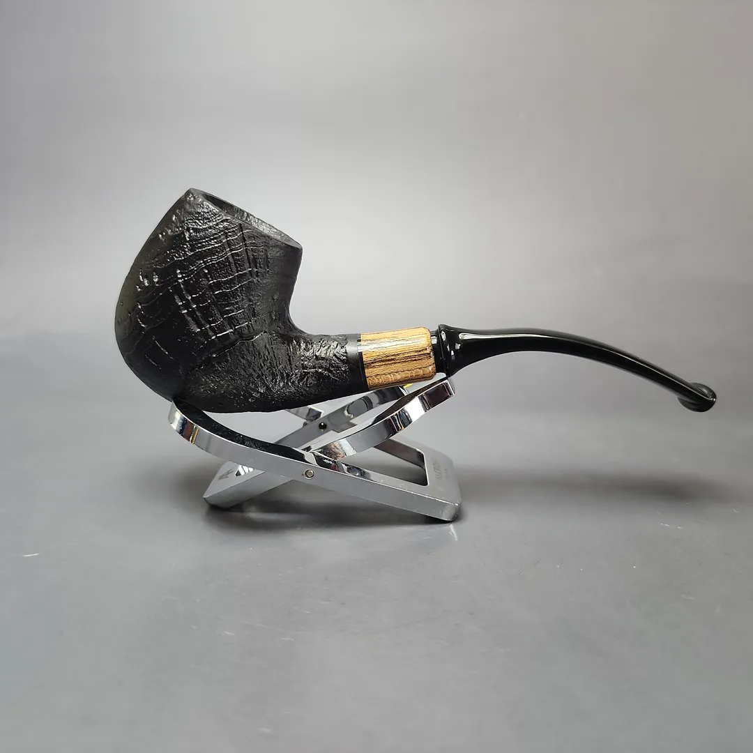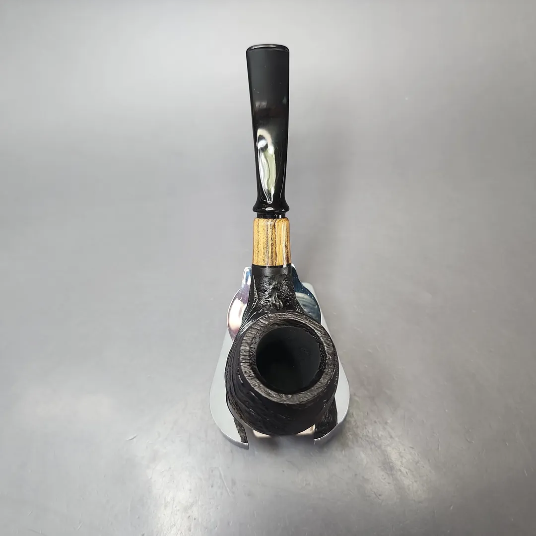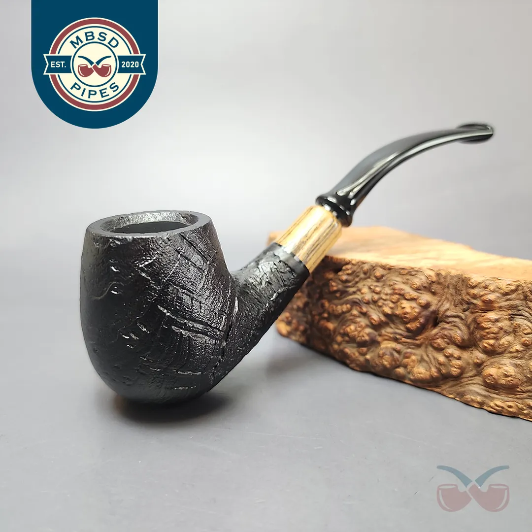 MBSD Briars by Piero Vitale Black Sandblasted Brandy w/ Zebrawood Briar Pipe, New
