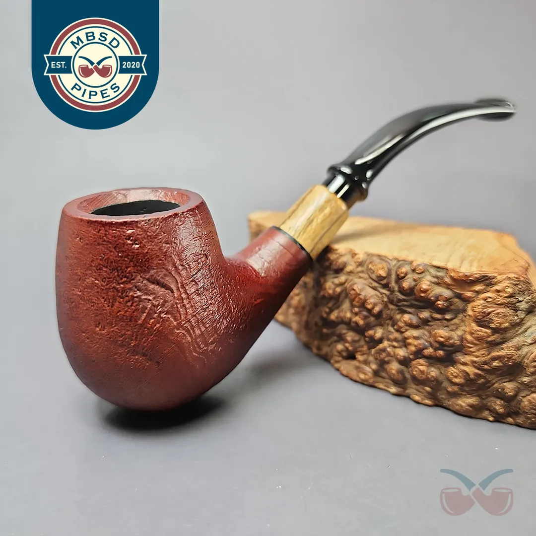 MBSD Briars by Piero Vitale Red Sandblasted Brandy w/ Zebrawood Briar Pipe, New