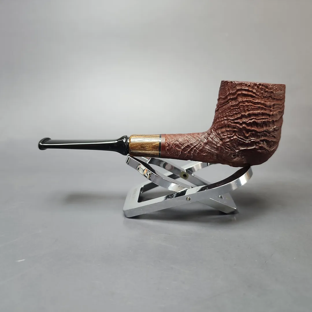 MBSD Briars by Piero Vitale Vintage Sandblasted Billiard w/ Zebrawood Briar Pipe, New