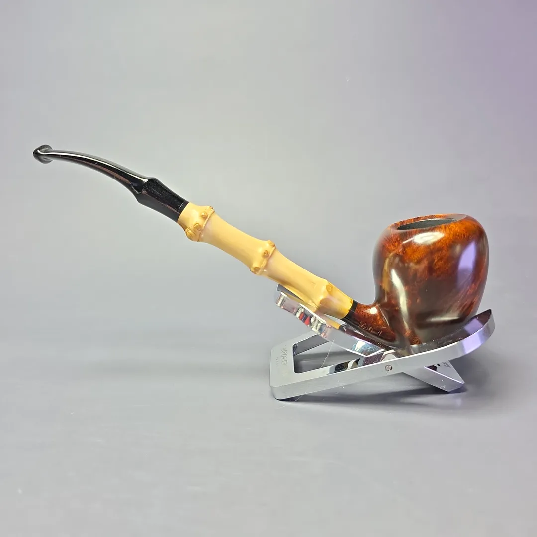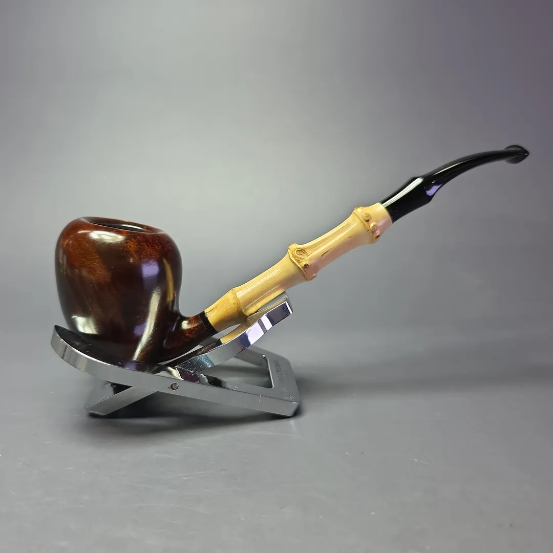 Modern Masters shape 1 is our tribute to one of the original pioneers of modern pipe making and one of the very first “freehand” carvers: Sixten Ivarsson. While there are countless designs by Sixten Ivarsson that we could have chosen from, we ultimately decided on one that arguably inaugurated “Scandinavian pipe making,” the Peewit. Inspired by the eggs of the northern lapwing, Ivarsson’s Peewits have remained a firm favorite among pipe smokers and collectors since their conception in the 1950s. This one is based on one of the many Peewit shapes Ivarsson created using bamboo, a material he was especially partial to throughout his career, and is paired with a simple, hand-cut black ebonite stem and aluminum tenon.