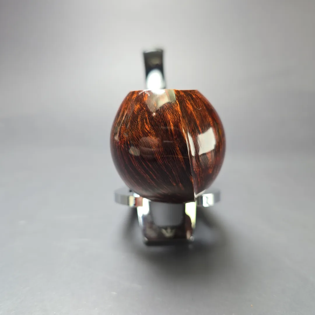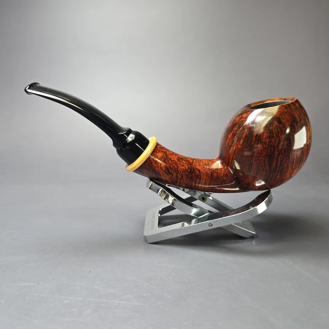 Modern Masters shape number 2 is our tribute to the legendary Lars Ivarsson. It is based on a genre of shapes that he is now credited with inventing, the “blowfish”, which is said to have been first inspired by his visits to a local aquarium. In Ivarssonian fashion, it’s a long, plump shape, distinguished by the “fin” running from the front of the bowl right to the end of the pipe’s teardrop shank. Similarly, the shank end is capped with a boxwood ferrule, while the stem is hand-cut black ebonite.