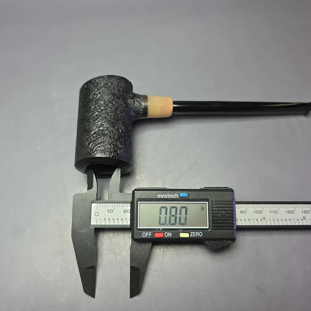 With these examples in mind, for our own poker rendition we followed that same minimalist precedent, but with a few modifications to bring it in line with the tastes of today’s pipe smokers. First, we decided on having the bowl be a little larger than the traditional Don, which allowed for a deeper chamber and helped keep it sturdy sitter. Second, we decided on having a perfectly straight mouthpiece, rather than the slightly bent ones typically found on Don shapes, as we found this to be more comfortable for sipping, while also making sure that the button doesn’t ever touch the surface the pipe is set on. Third, and as a last touch, we decided to use boxwood and horn for the pipe’s ferrule instead of vulcanite, which add a dash of color and contrast to the design while maintaining a sturdy fitment. It’s not quite a “true Don”—more like a “Re-Don.”