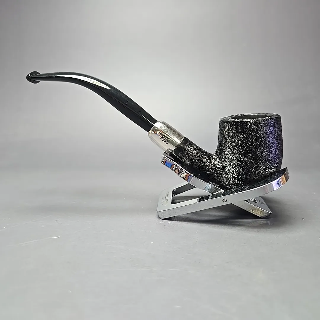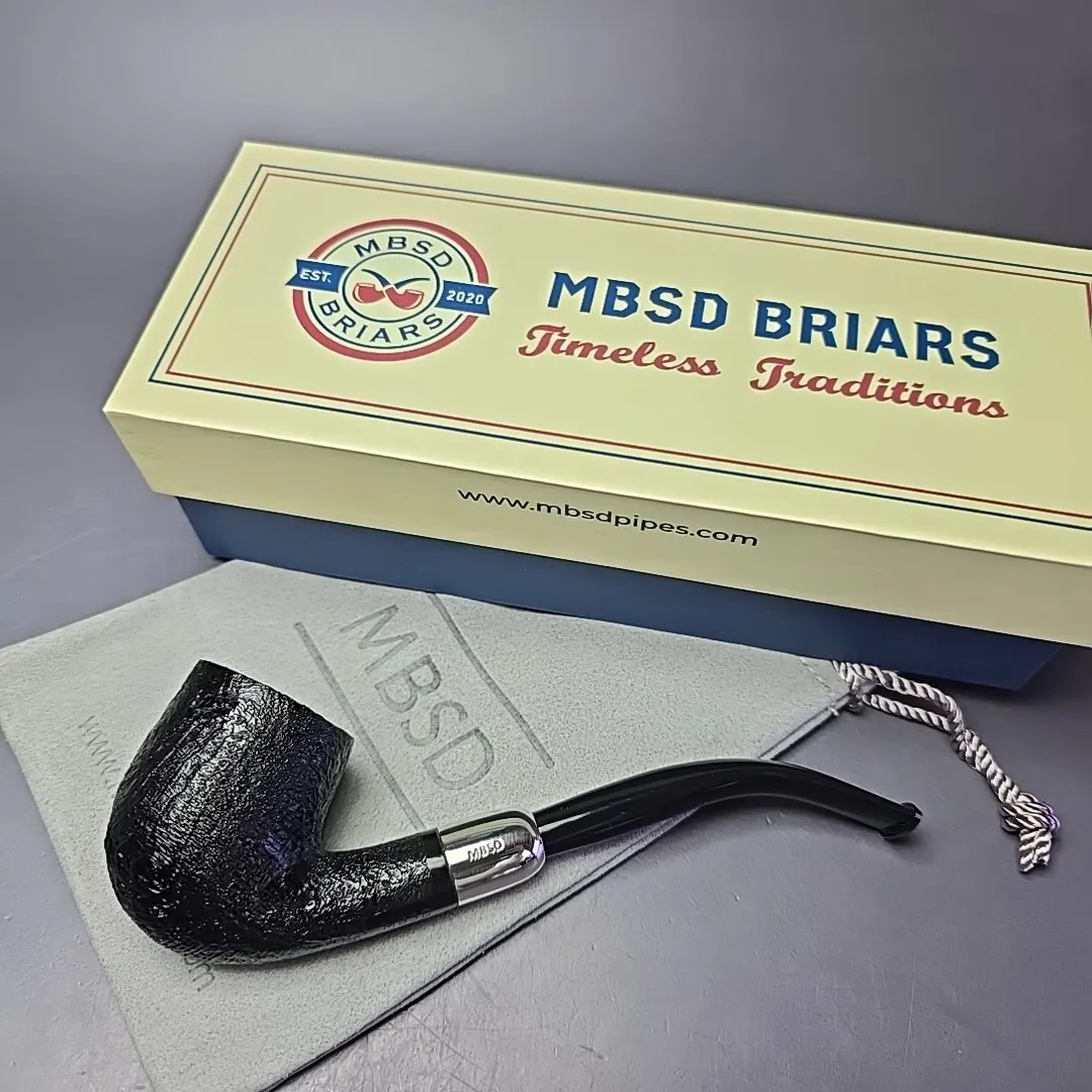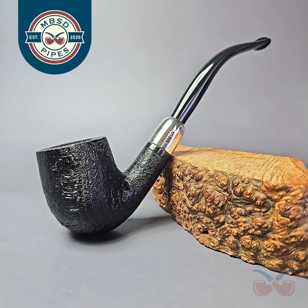 MBSD Briars Timeless Traditions 2 Sandblasted Bent Billiard w/ Silver Handmade Briar Pipe, New