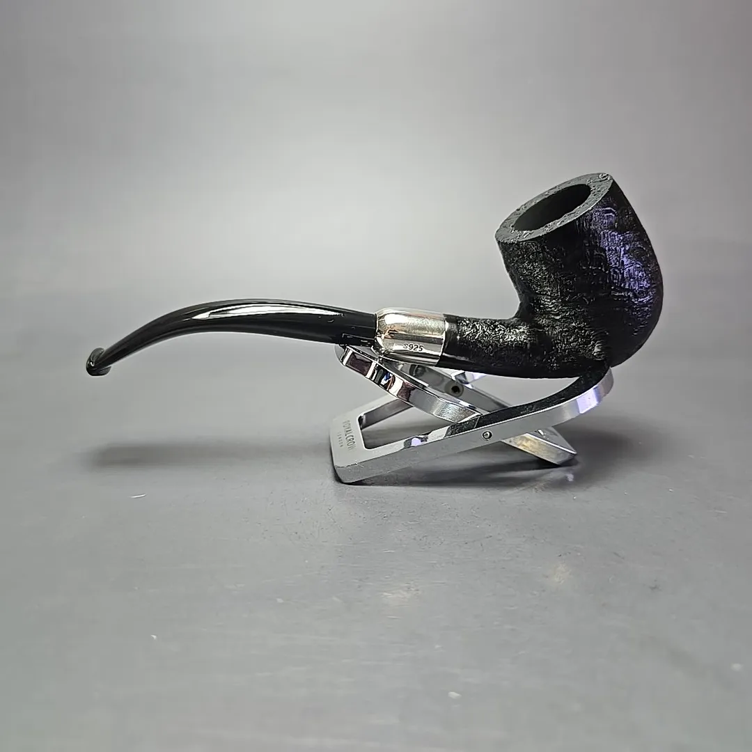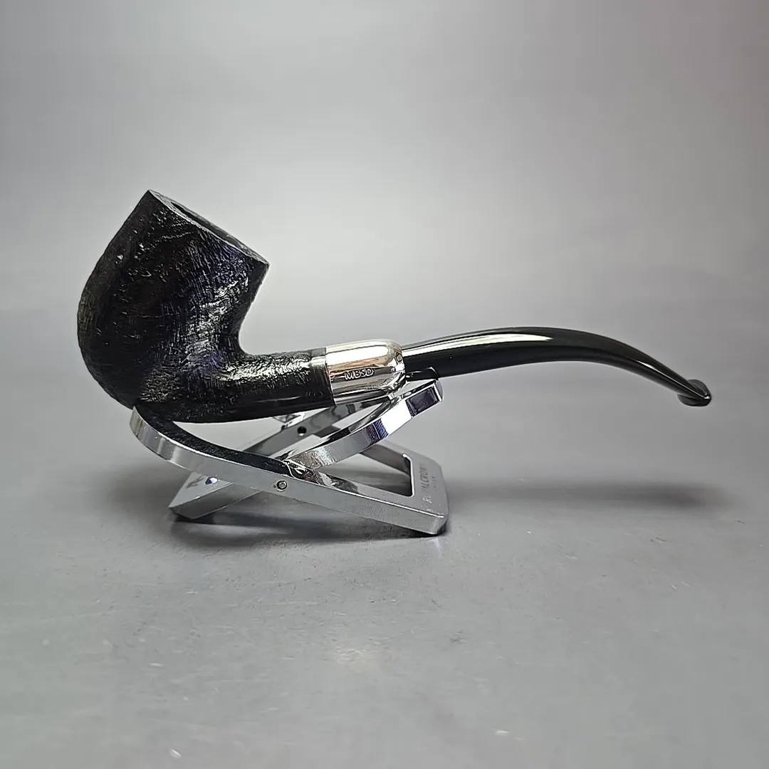 MBSD Briars Timeless Traditions 2 Sandblasted Bent Billiard w/ Silver Handmade Briar Pipe, New