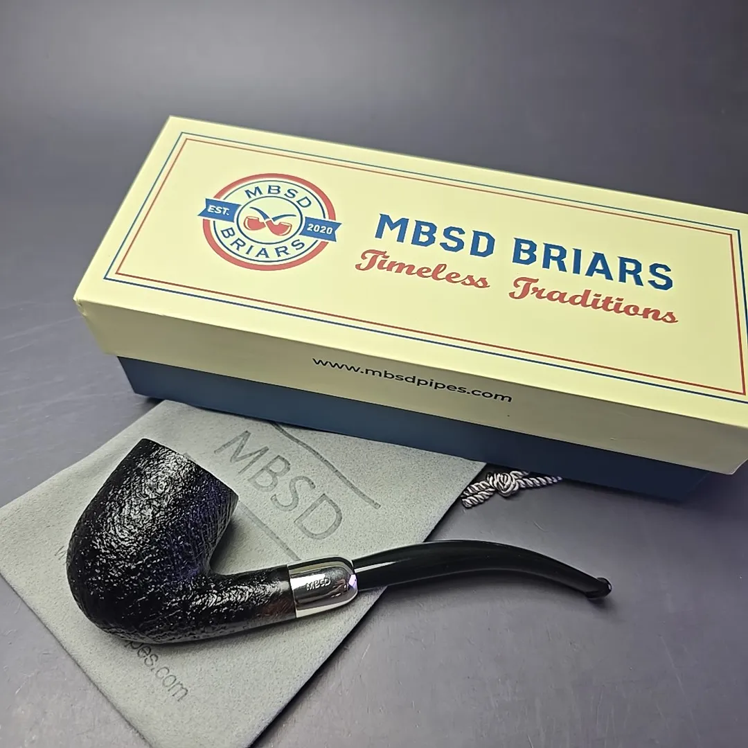 MBSD Briars Timeless Traditions 2 Sandblasted Bent Billiard w/ Silver Handmade Briar Pipe, New