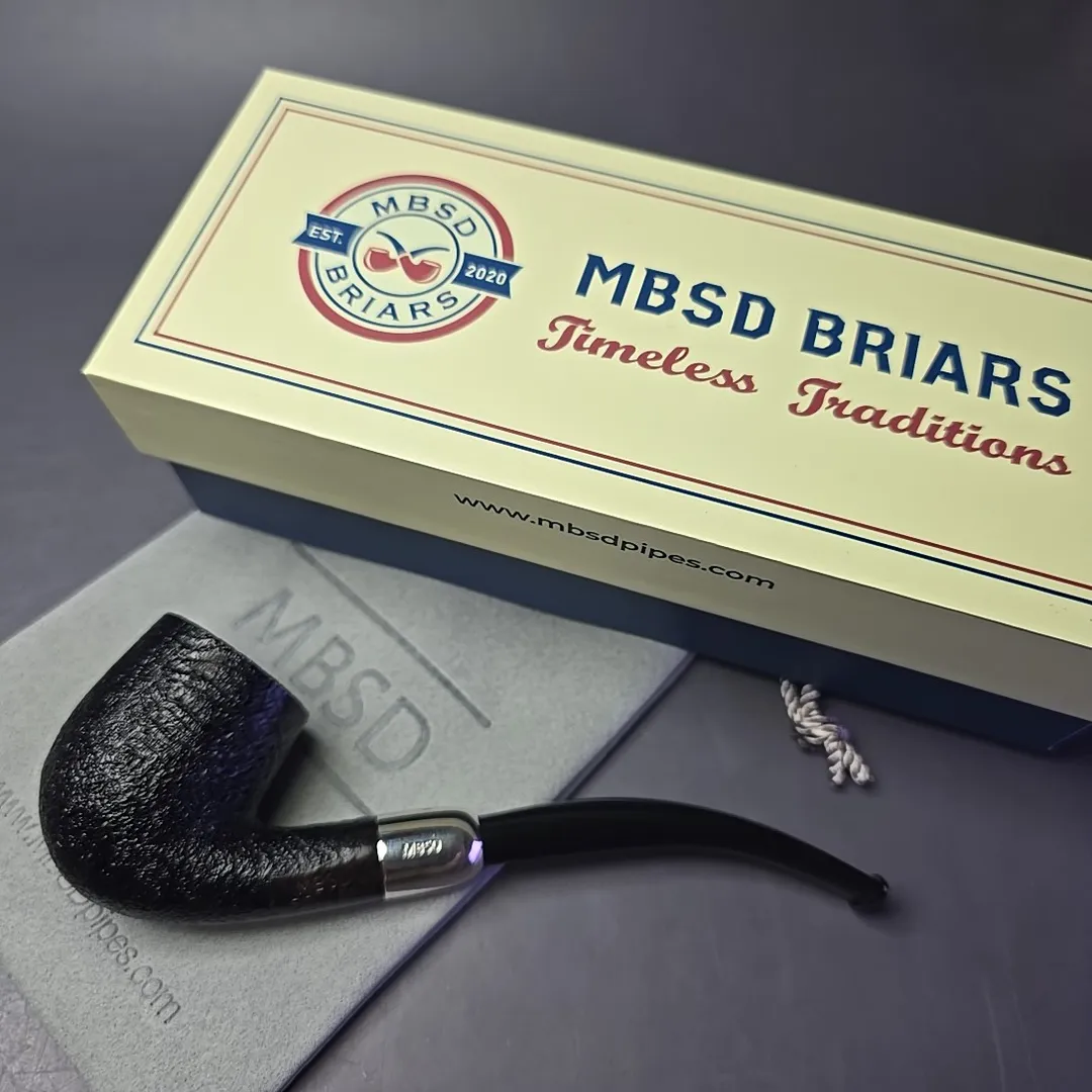 MBSD Briars Timeless Traditions 2 Sandblasted Bent Billiard w/ Silver Handmade Briar Pipe, New