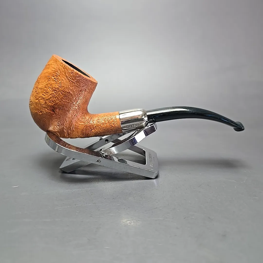 MBSD Briars Timeless Traditions 2 Sandblasted Bent Billiard w/ Silver Handmade Briar Pipe, New