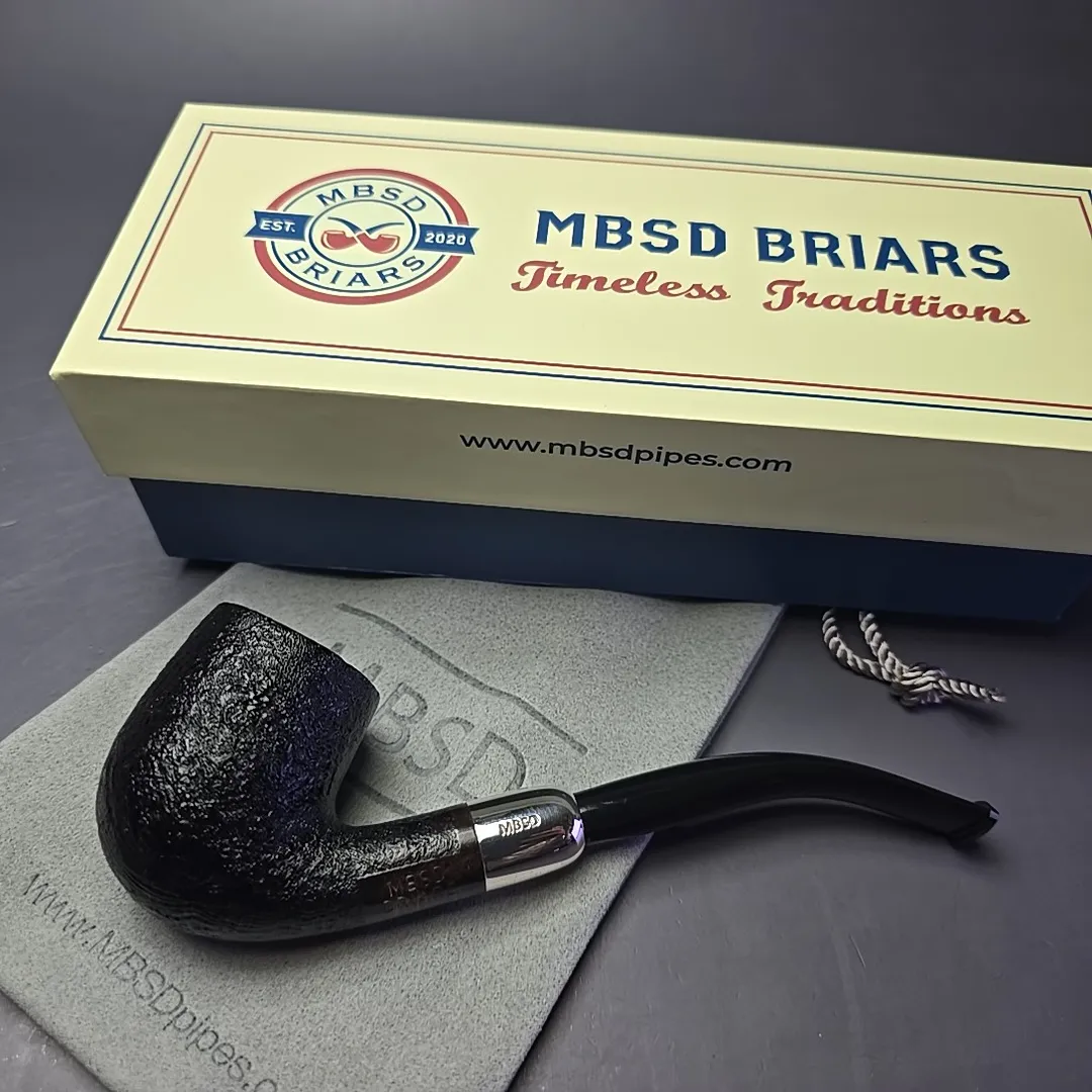 MBSD Briars Timeless Traditions 2 Sandblasted Bent Billiard w/ Silver Handmade Briar Pipe, New