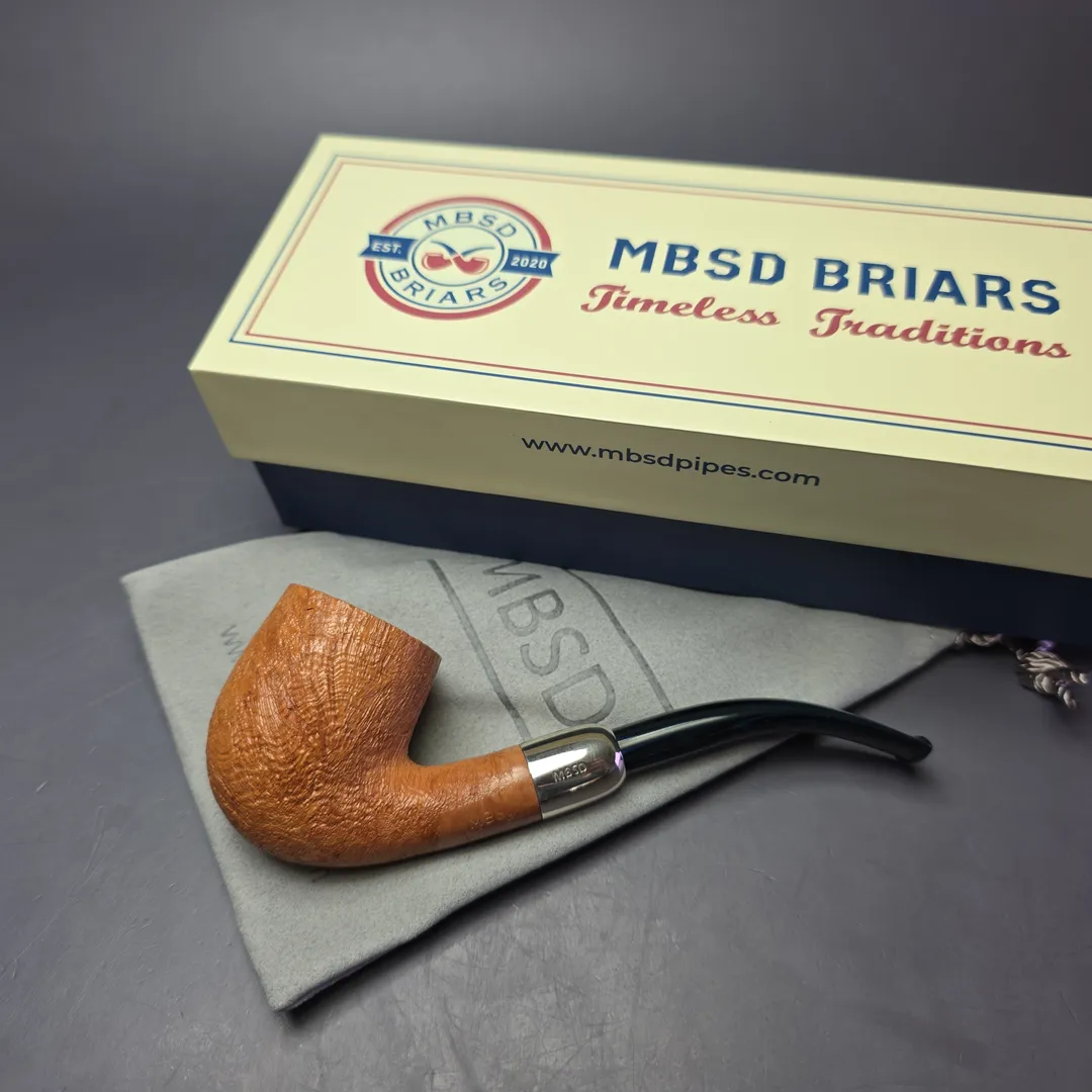 MBSD Briars Timeless Traditions 2 Sandblasted Bent Billiard w/ Silver Handmade Briar Pipe, New