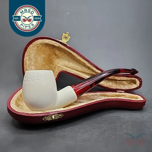 MBSD Classic Bent Apple Block Meerschaum Pipe, Fitted Case