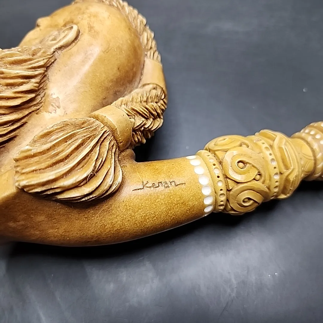 MBSD Meerschaum Masters is our line for special, typically figural, meerschaum pipes carved by some of today’s greatest living meerschaum carvers. For this pipe, we enlisted the services of Turkish master Kenan.