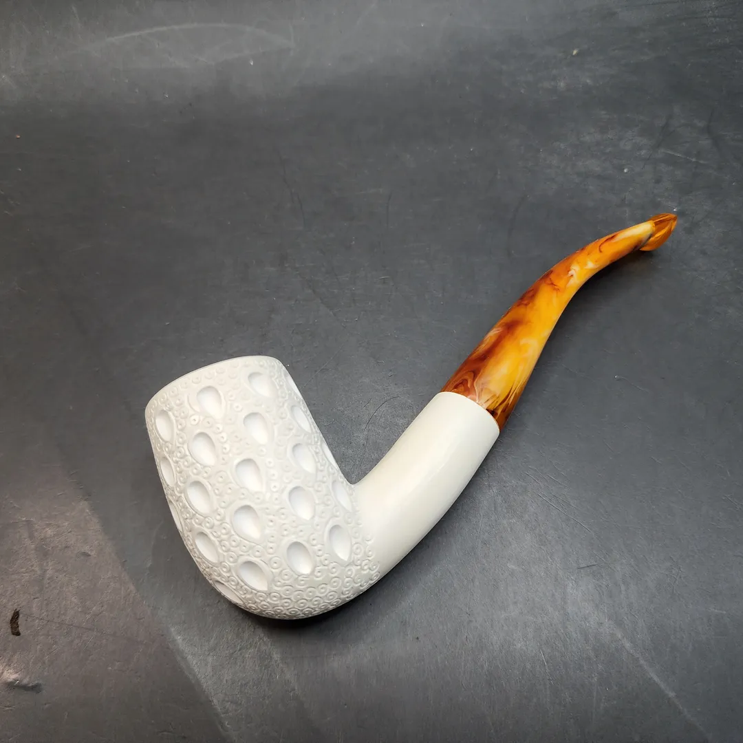 If you’re seeking a top-notch block meerschaum pipe that offers quality without breaking the bank, look no further! The size of a block meerschaum significantly influences its price. In contrast to the past, where the main cost of a meerschaum pipe was in the physical crafting, today, the expense is determined by the raw meerschaum. Smaller pipes come at a more affordable price, while larger pipes command a higher cost. This is our mid-range meer that sports a good size chamber!