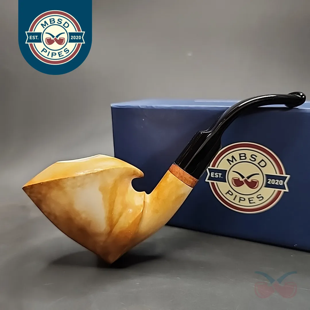 MBSD Meerschaum Deluxe Asymmetrical Freehand Block Meerschaum Pipe, Briar-Mortise