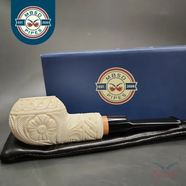 MBSD Meerschaum Deluxe Floral Tomato Block Meerschaum Pipe, Briar-Mortise