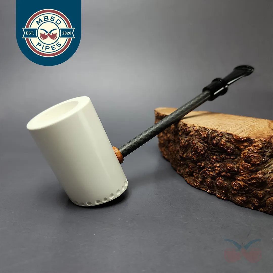At MBSD we sell a lot of high-grade, high-quality pipes from various iconic makes, but some of the pipes we’re most proud of are our meerschaums. Right from the beginning, we wanted to offer the best smoking meers on the market, and to do this, we had them made with two distinct features. First, we made sure that they were made with block meerschaum that was carefully selected to be the most lightweight, pure, and porous available, meaning it would also color more quickly and evenly as it is smoked. Second, for our Deluxe meerschaums, we had the pipes made with a patented Briar-Mortise system that is closer to the stem connection on a briar pipe than a standard meerschaum. This is because, on our Deluxe models, the mortise is made from briar itself, while the tenons used are made from Delrin. This allows for more precision construction of the pipe’s draft hole, as well as a general extra durability and longevity.