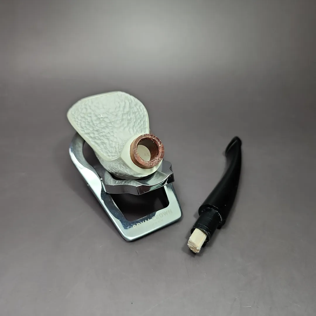 At MBSD we sell a lot of high-grade, high-quality pipes from various iconic makes, but the pipes we’re most proud of are our meerschaums. Right from the beginning, we wanted to offer the best smoking meers on the market, and to do this, we had them made with two distinct features. First, we made sure that they were made with block meerschaum that was carefully selected to be the most lightweight, pure, and porous available, meaning it would also color more quickly and evenly as it is smoked. Second, for our Deluxe meerschaums, we had the pipes made with a patented Briar-Mortise system that is closer to the stem connection on a briar pipe than a standard meerschaum. This is because, on our Deluxe models, the mortise is made from briar itself, while the tenons used are made from Delrin. This allows for more precision construction of the pipe’s draft hole, as well as a general extra durability and longevity.