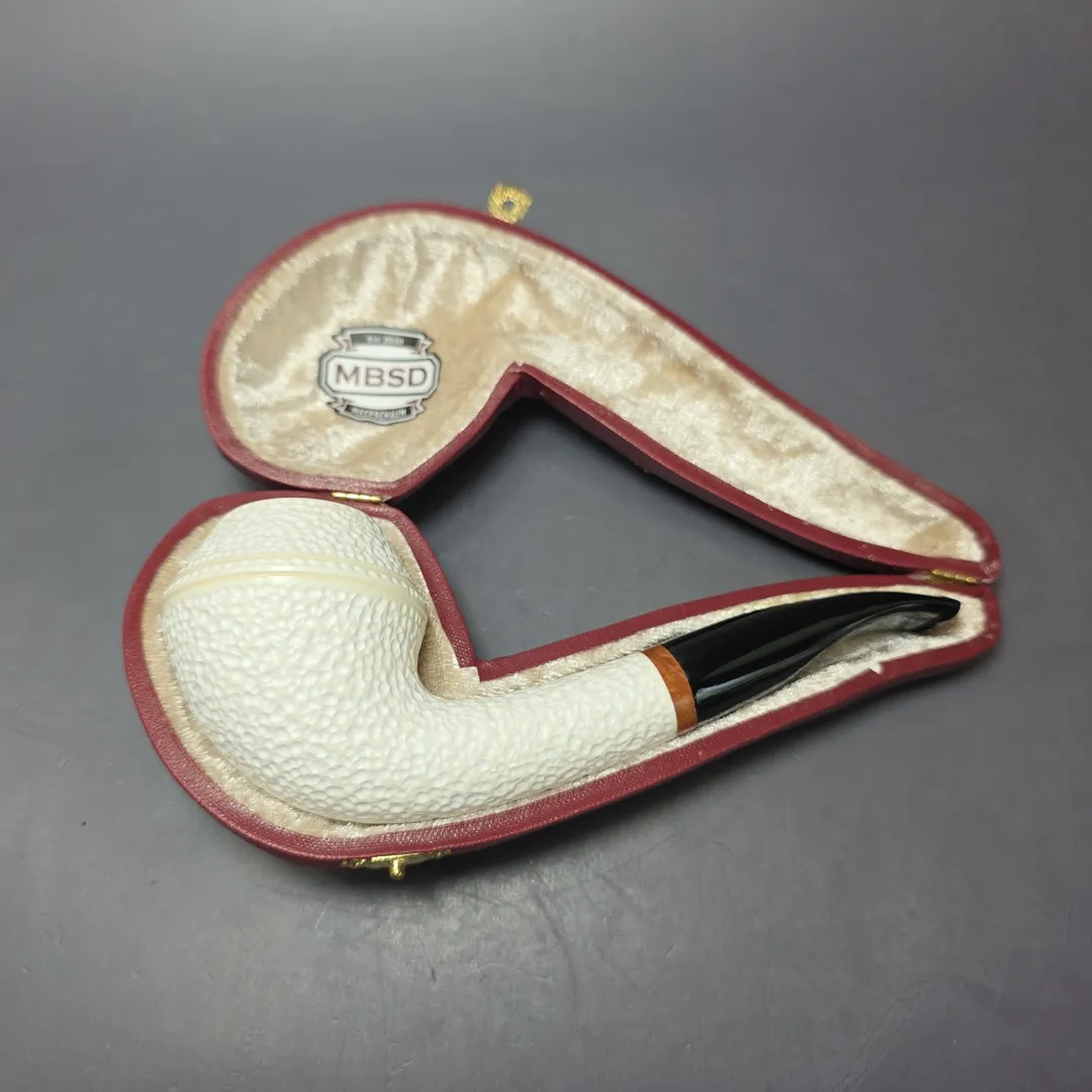 MBSD Meerschaum Deluxe Rusticated Rhodesian Block Meerschaum Pipe, Briar-Mortise, New