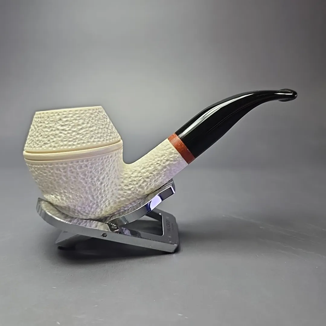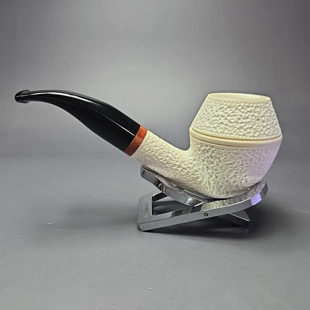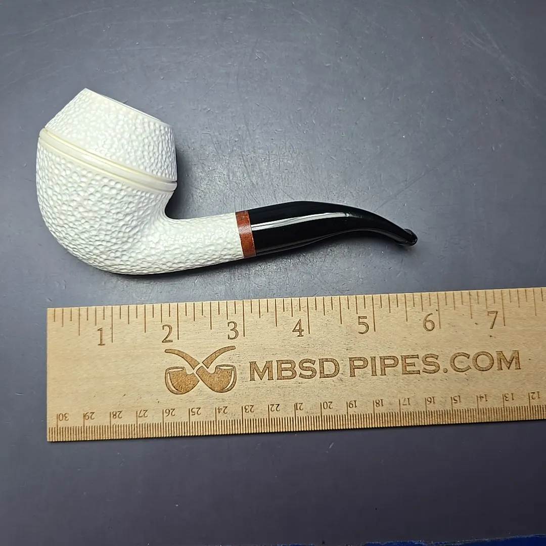 MBSD Meerschaum Deluxe Rusticated Rhodesian Block Meerschaum Pipe, Briars-Mortise, New