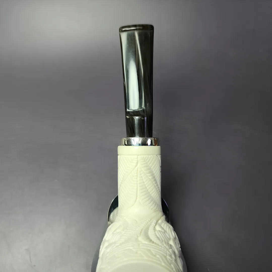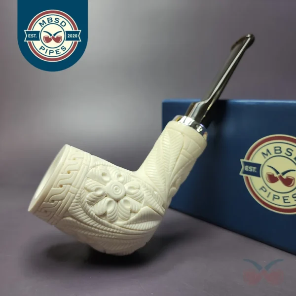 MBSD Meerschaum Deluxe Silver Floral Reverse Calabash Brandy Block Meerschaum Pipe, New