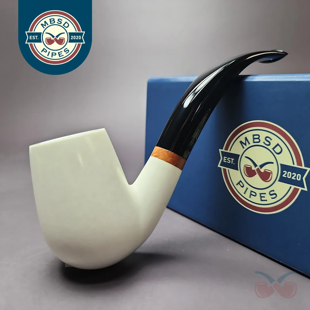 MBSD Meerschaum Deluxe Smooth “LC” Bent Billiard Block Meerschaum Pipe, Briar-Mortise
