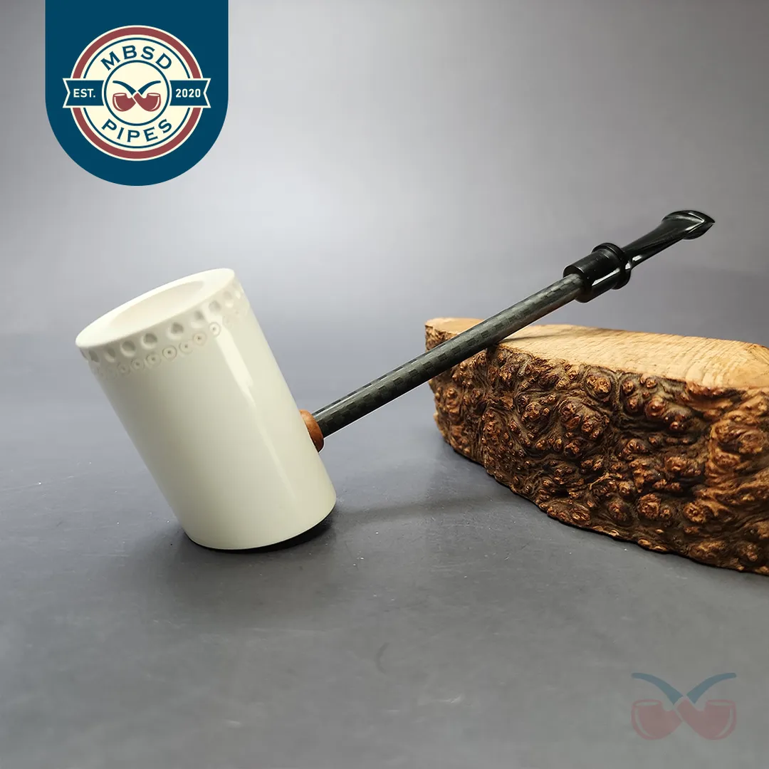 At MBSD we sell a lot of high-grade, high-quality pipes from various iconic makes, but the pipes we’re most proud of are our meerschaums. Right from the beginning, we wanted to offer the best smoking meers on the market, and to do this, we had them made with two distinct features. First, we made sure that they were made with block meerschaum that was carefully selected to be the most lightweight, pure, and porous available, meaning it would also color more quickly and evenly as it is smoked. Second, for our Deluxe meerschaums, we had the pipes made with a patented Briar-Mortise system that is closer to the stem connection on a briar pipe than a standard meerschaum. This is because, on our Deluxe models, the mortise is made from briar itself, while the tenons used are made from Delrin. This allows for more precision construction of the pipe’s draft hole, as well as a general extra durability and longevity.