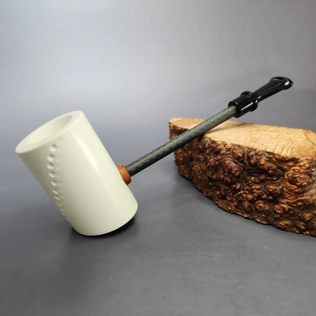 At MBSD we sell a lot of high-grade, high-quality pipes from various iconic makes, but the pipes we’re most proud of are our meerschaums. Right from the beginning, we wanted to offer the best smoking meers on the market, and to do this, we had them made with two distinct features. First, we made sure that they were made with block meerschaum that was carefully selected to be the most lightweight, pure, and porous available, meaning it would also color more quickly and evenly as it is smoked. Second, for our Deluxe meerschaums, we had the pipes made with a patented Briar-Mortise system that is closer to the stem connection on a briar pipe than a standard meerschaum. This is because, on our Deluxe models, the mortise is made from briar itself, while the tenons used are made from Delrin. This allows for more precision construction of the pipe’s draft hole, as well as a general extra durability and longevity.