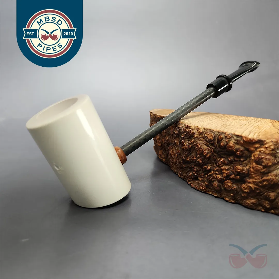 At MBSD we sell a lot of high-grade, high-quality pipes from various iconic makes, but the pipes we’re most proud of are our meerschaums. Right from the beginning, we wanted to offer the best smoking meers on the market, and to do this, we had them made with two distinct features. First, we made sure that they were made with block meerschaum that was carefully selected to be the most lightweight, pure, and porous available, meaning it would also color more quickly and evenly as it is smoked. Second, for our Deluxe meerschaums, we had the pipes made with a patented Briar-Mortise system that is closer to the stem connection on a briar pipe than a standard meerschaum. This is because, on our Deluxe models, the mortise is made from briar itself, while the tenons used are made from Delrin. This allows for more precision construction of the pipe’s draft hole, as well as a general extra durability and longevity.