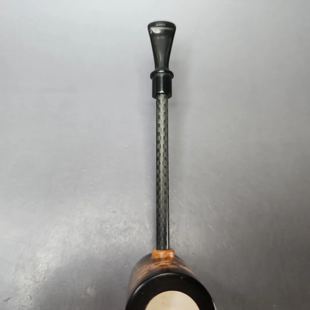 Tobacco pipe design has for centuries been pulled along by smokers’ desires for something that works well and for something that looks good. This is broadly the case in product design writ large. The degree of importance assigned to either of these qualities is deeply personal, but since around the end of the 20th century, after the boom in extravagant pipe design from the post-war Danish schools, there has been significant counter-movement back to stripped-down, functionalist smoking instruments by many in the community. And when it comes to shapes, it doesn’t get much more functionalist than the poker. This Deluxe is our own contribution to the functionalist revival spearheaded by figures such as Tom Eltang and Erik Nording, but in meerschaum and with our signature, patented Briar-Mortise. It’s extremely lightweight, easy to disassemble, and, in this instance, pre-colored in a way that emulates the fumed, weathered, finish of an African meer from decades past