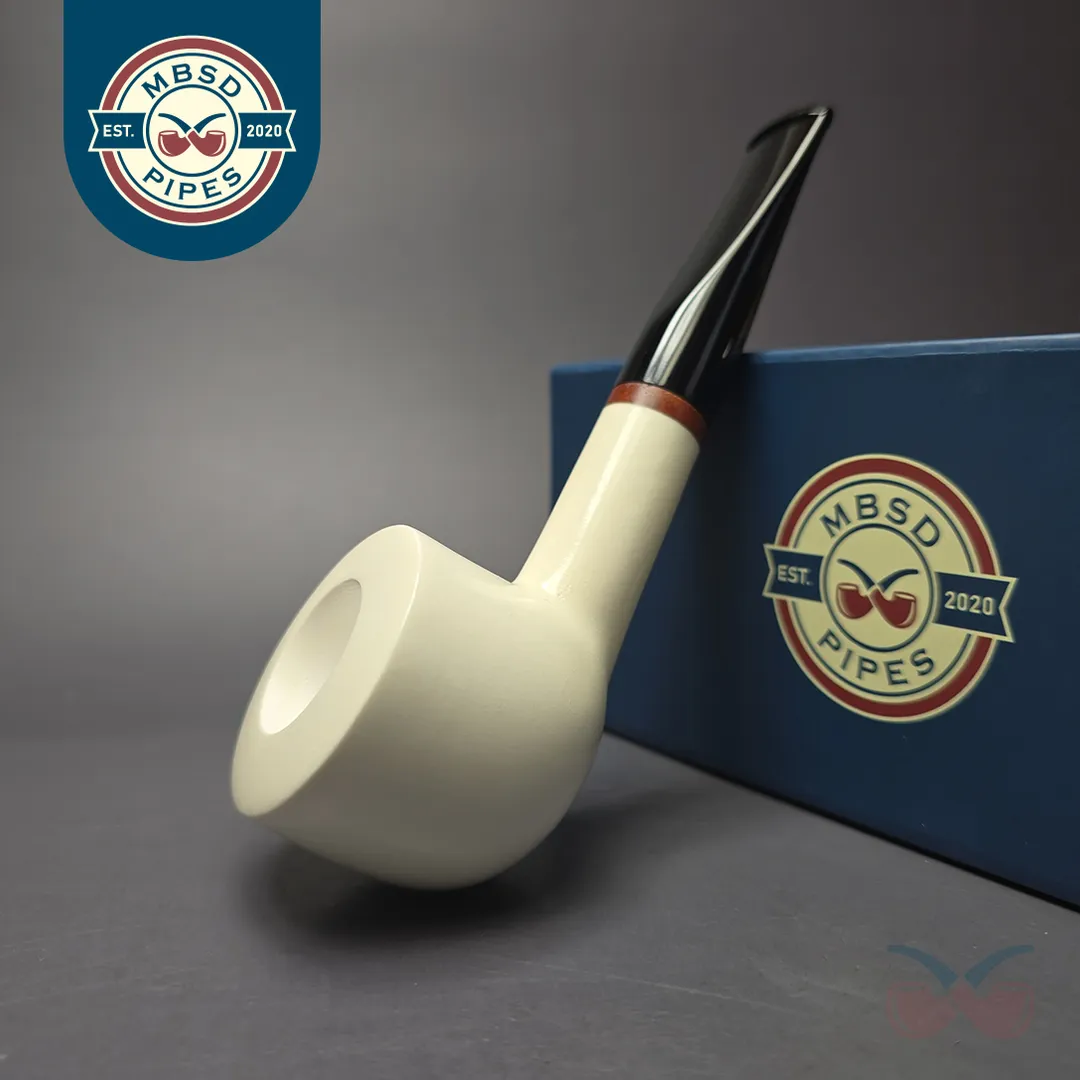 At MBSD we sell a lot of high-grade, high-quality pipes from various iconic makes, but some of the pipes we’re most proud of are our meerschaums. Right from the beginning, we wanted to offer the best smoking meers on the market, and to do this, we had them made with two distinct features. First, we made sure that they were made with block meerschaum that was carefully selected to be the most lightweight, pure, and porous available, meaning it would also color more quickly and evenly as it is smoked. Second, for our Deluxe meerschaums, we had the pipes made with a patented Briar-Mortise system that is closer to the stem connection on a briar pipe than a standard meerschaum. This is because, on our Deluxe models, the mortise is made from briar itself, while the tenons used are made from Delrin. This allows for more precision construction of the pipe’s draft hole, as well as a general extra durability and longevity.