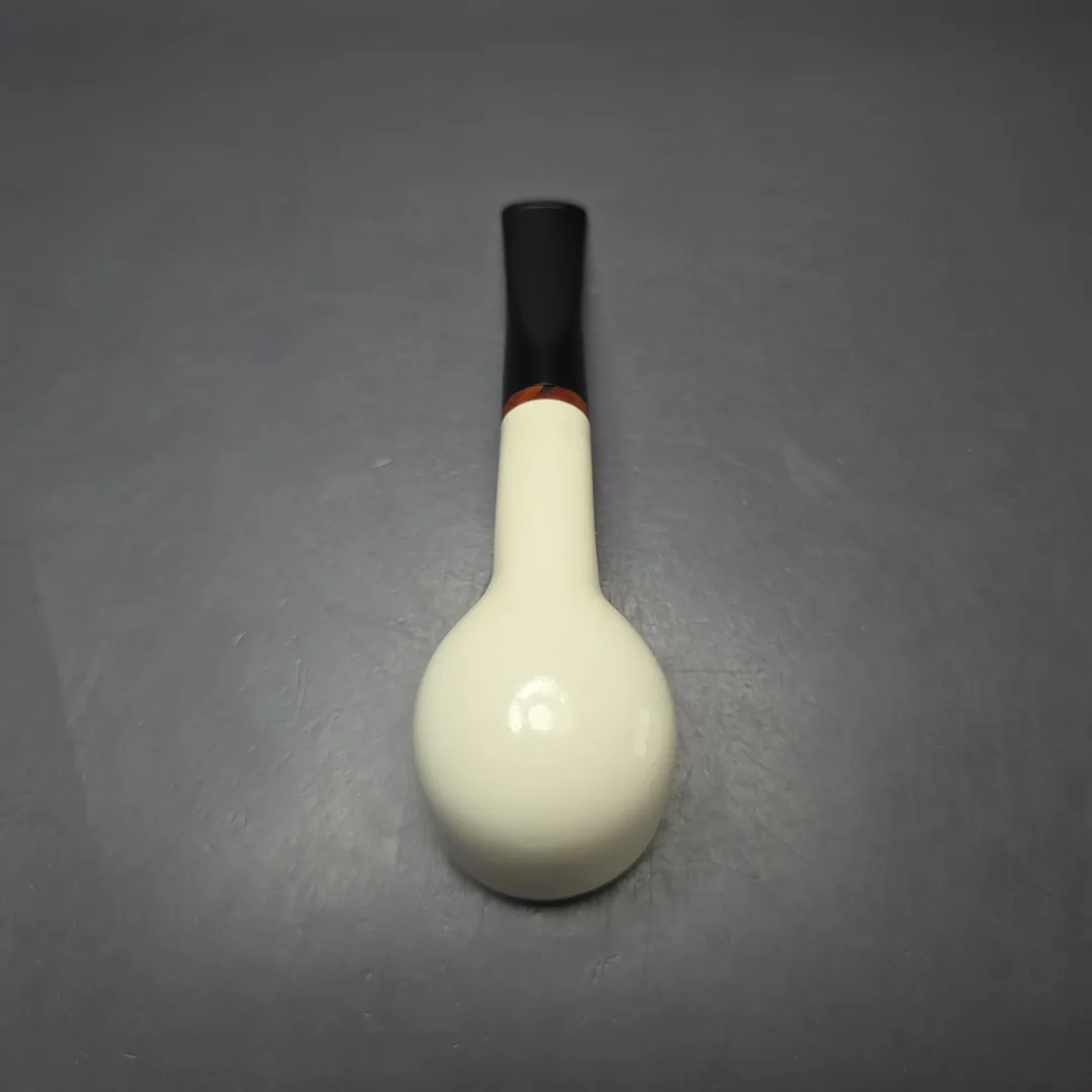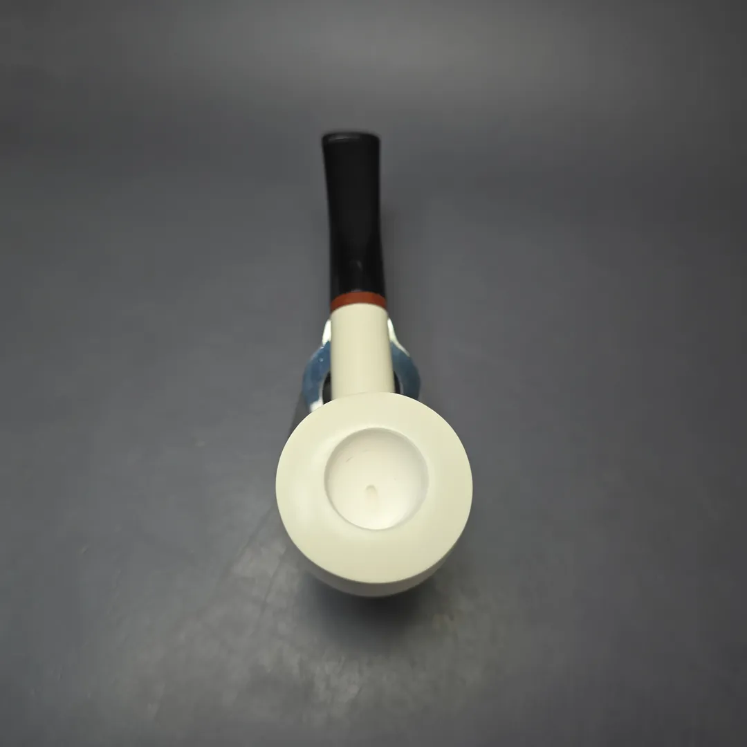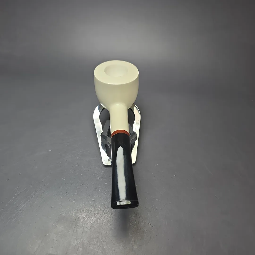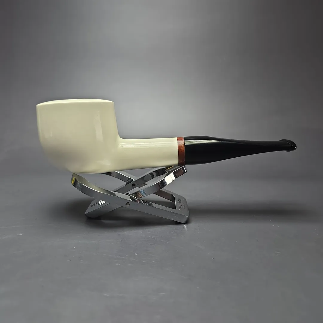 Like many of our meerschaums, the design for this one was inspired by briar pipes, while keeping the specific affordances of high-grade meerschaum firmly in mind. However, while many of our meerschaum designs are inspired by artisan briars, whether Danish, Italian, or from elsewhere, this one is far more traditional in inclination. After all, it’s difficult to beat a good, wide-chambered pot (especially for ribbon and mixture cuts), which is why people still seek out old Sasieni Moorgates and Charatan Outsize Pots today. So, the idea was to have something similar in our meerschaum catalog.