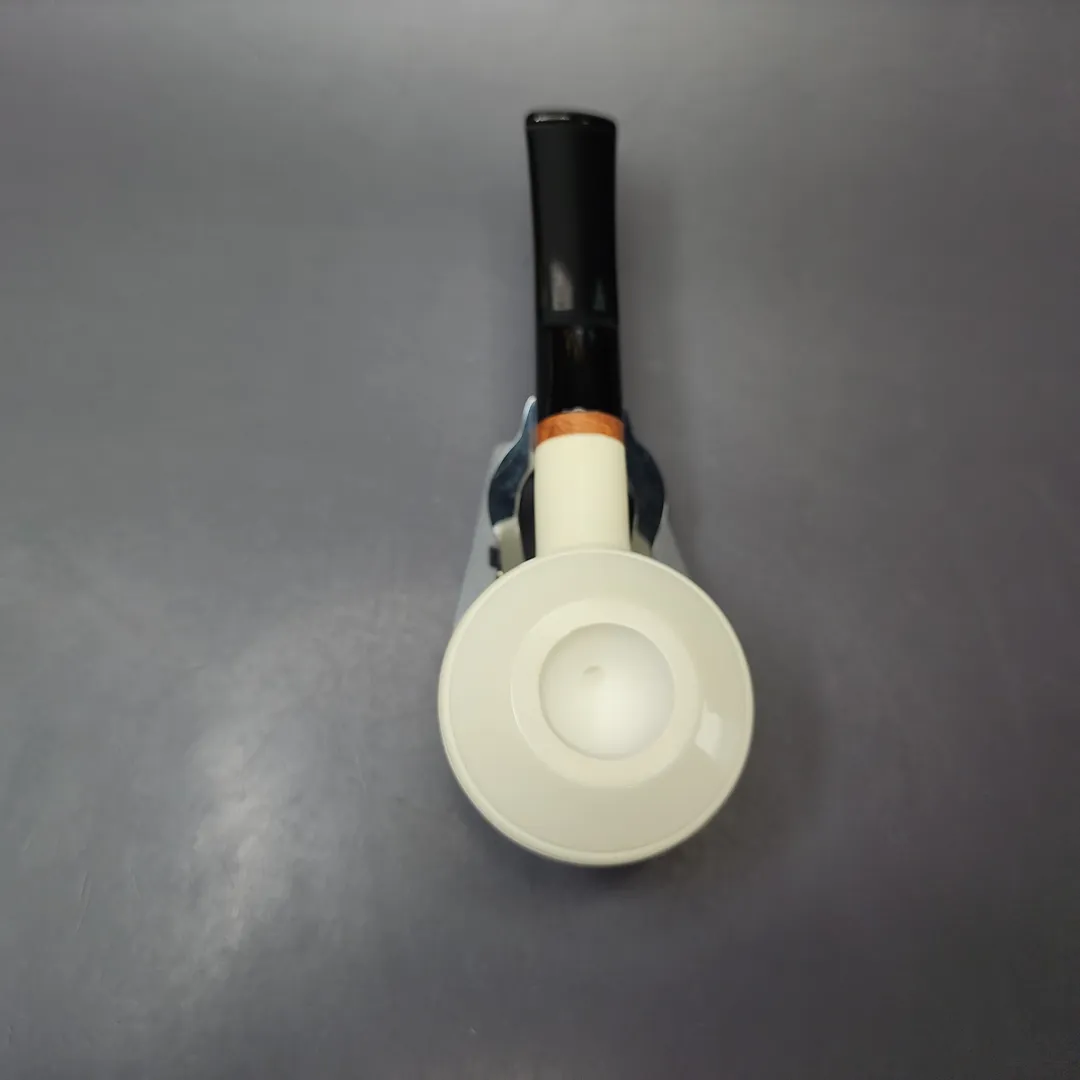At MBSD we sell a lot of high-grade, high-quality pipes from various iconic makes, but the pipes we’re most proud of are our meerschaums. Right from the beginning, we wanted to offer the best smoking meers on the market, and to do this, we had them made with two distinct features. First, we made sure that they were made with block meerschaum that was carefully selected to be the most lightweight, pure, and porous available, meaning it would also color more quickly and evenly as it is smoked. Second, for our Deluxe meerschaums, we had the pipes made with a patented Briar-Mortise system that is closer to the stem connection on a briar pipe than a standard meerschaum. This is because, on our Deluxe models, the mortise is made from briar itself, while the tenons used are made from Delrin. This allows for more precision construction of the pipe’s draft hole, as well as a general extra durability and longevity.