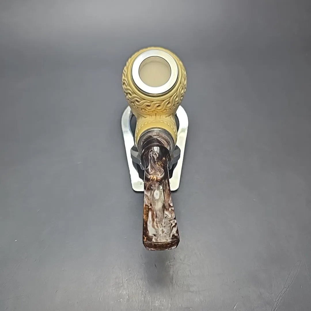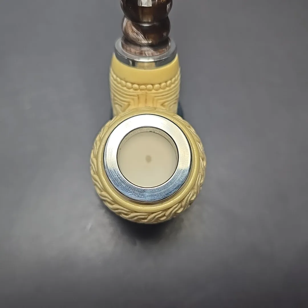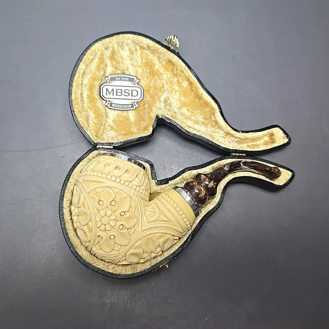 MBSD Meerschaum Double Silver Floral Egg Reverse Calabash Block Meerschaum Pipe, New