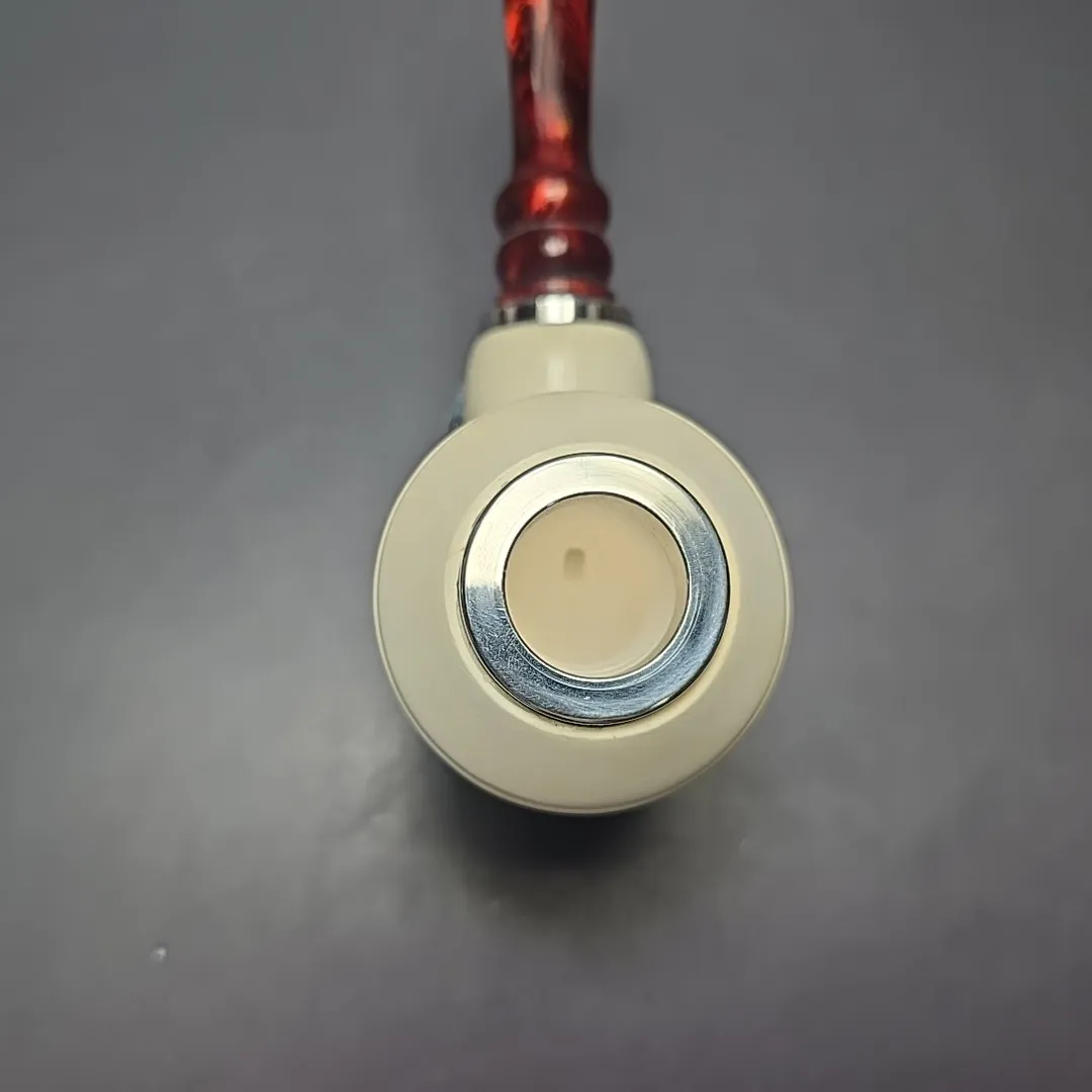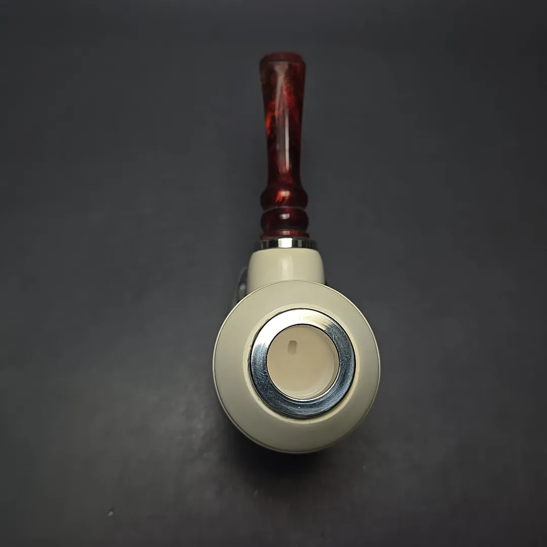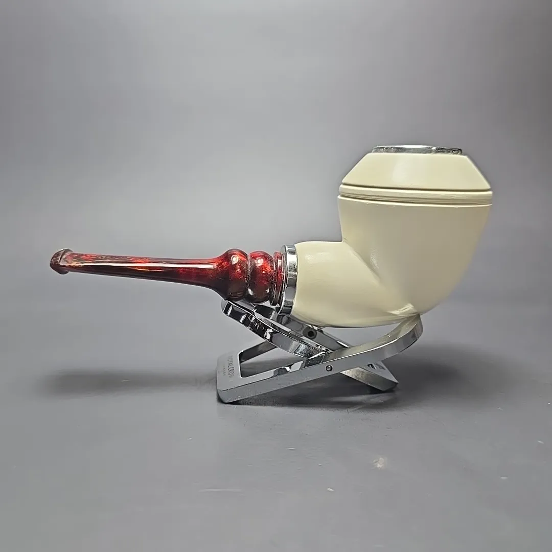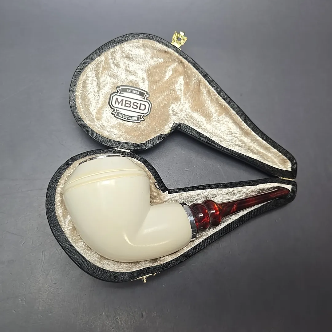 MBSD Meerschaum Double Silver Smooth Rhodesian Reverse Calabash Block Meerschaum Pipe, New