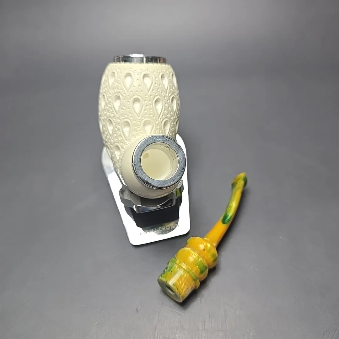 MBSD Meerschaum Double Silver Stacked Lattice Egg Reverse Calabash Block Meerschaum Pipe, New