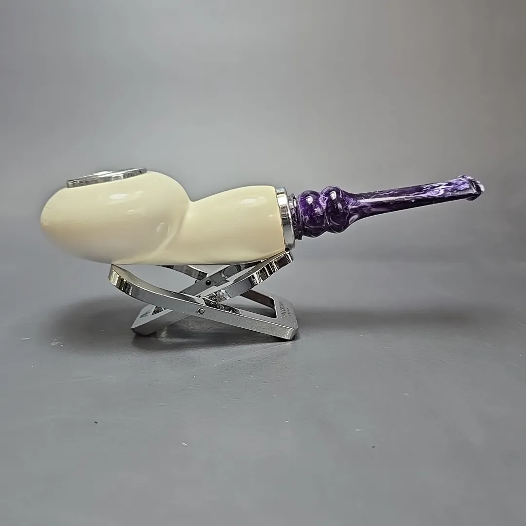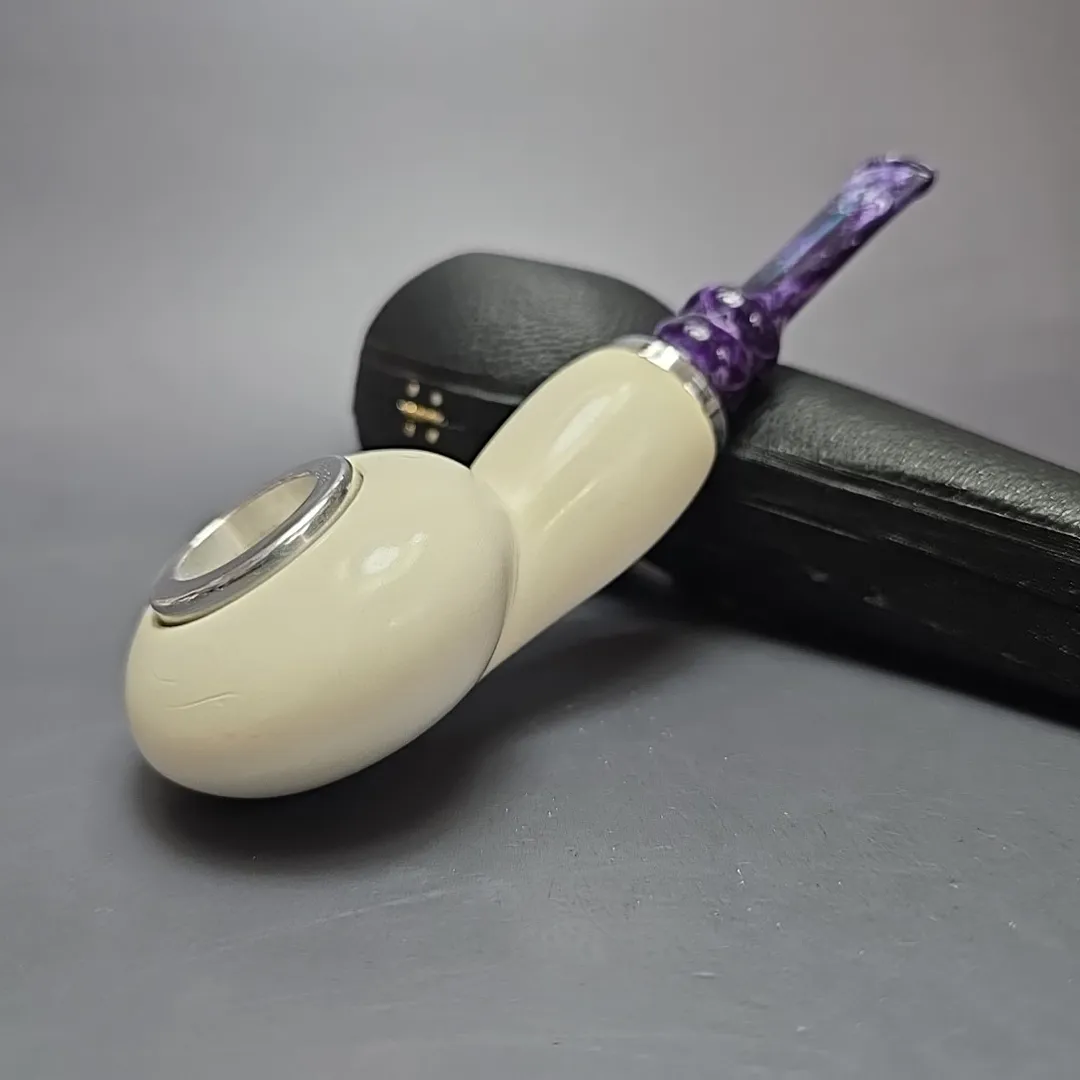 MBSD Meerschaum Double Silver XL Smooth Author Reverse Calabash Block Meerschaum Pipe, New