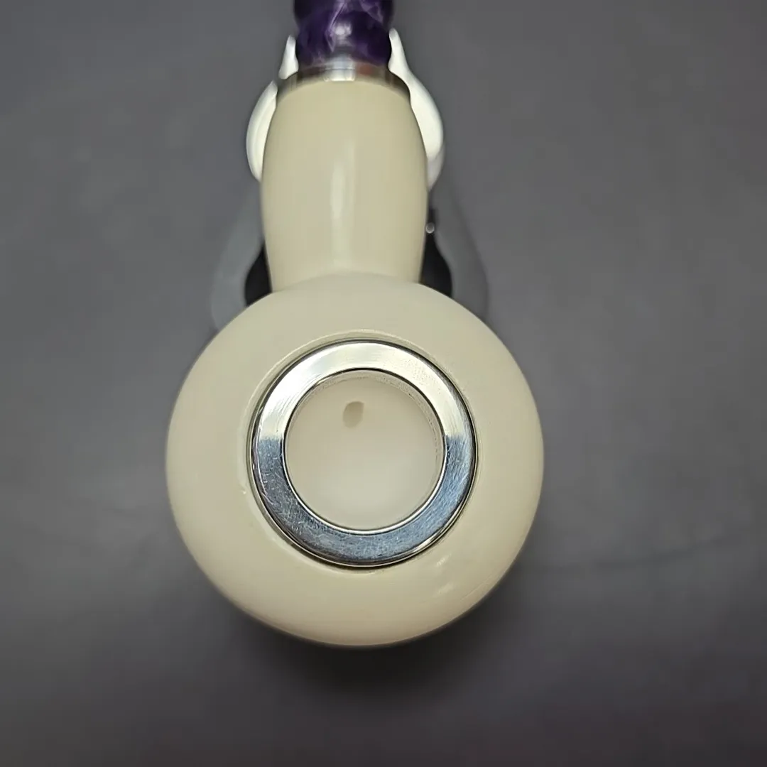 In addition to their functional improvements, one thing that we’ve always been interested in when it comes to our meerschaum pipes is expanding our design portfolio. In particular, we’re always looking to including new shapes that either aren’t commonly associated with the medium, or which have been transformed in the last half century via the briar artisan scene. This Double Silver line meerschaum is one of our many author renditions inspired by the classic designs of Italian pipe making, such as those of Brebbia and Savinelli. As an additional touch, a reverse calabash system has also been included within its shank, which should provide an even cooler, drier smoke than a standard-bore briar or meerschaum pipe.