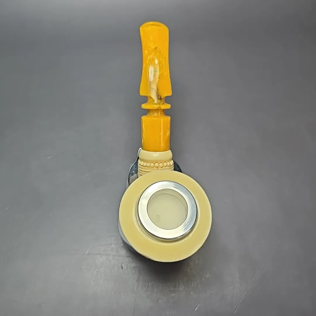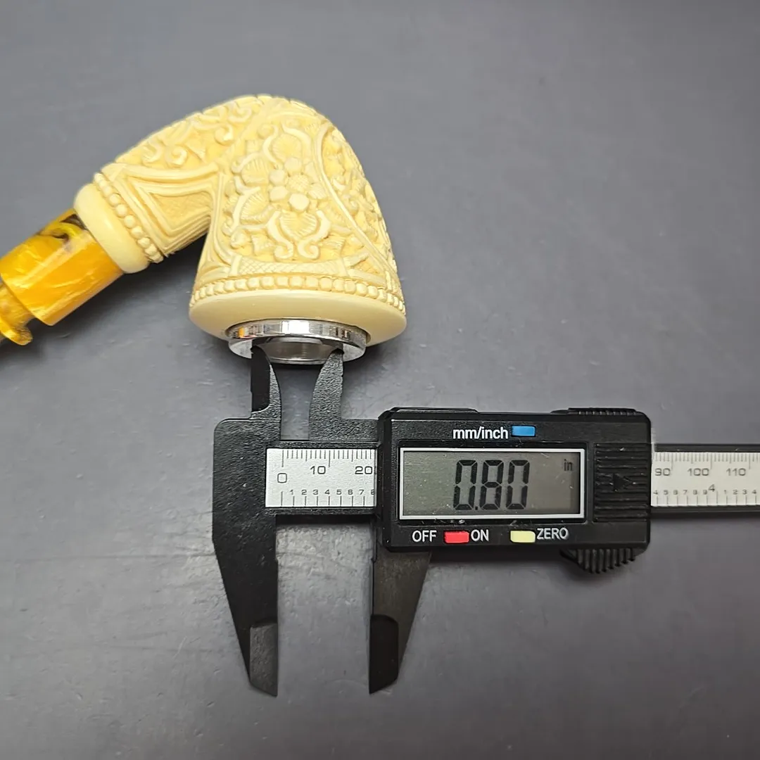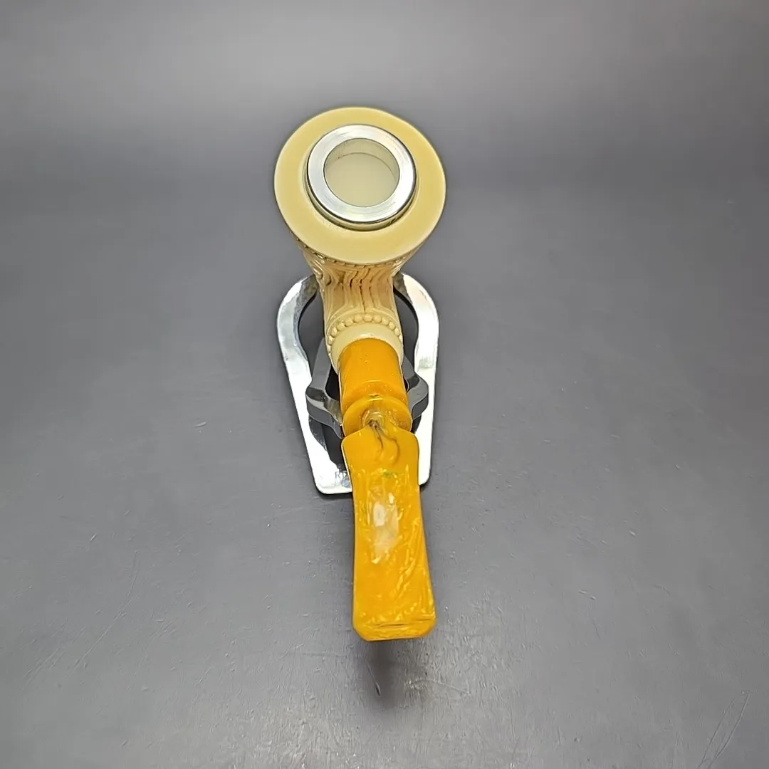 I do like a good Dublin, especially the stout and broad-bowled Dublins of post-war Denmark, and thus I cannot help but have similar shapes included in our MBSD Meerschaum catalog. This one blends a little of the new world with the old, as far as pipes go, with a good amount of Danish shaping to the bowl, but in a quintessentially Turkish, floral-carved dress. The mouthpiece is similarly classical, having been made from amber-toned acrylic, evoking the ornate meerschaums of the 19th and early 20th centuries.